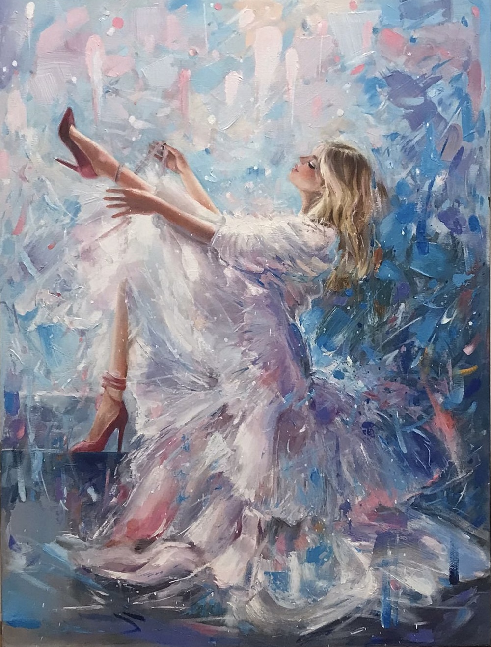 • Obraz malowany wysokiej jakości farbami olejnymi na płótnie bawełnianym o wymiarze 80x60cm, rok wykonania 2023.
