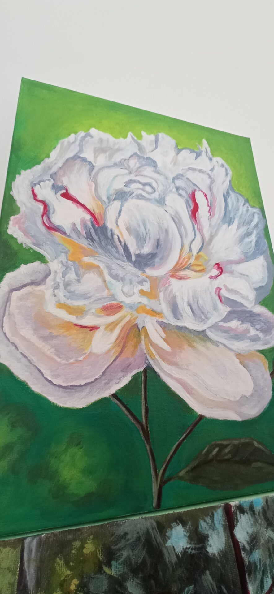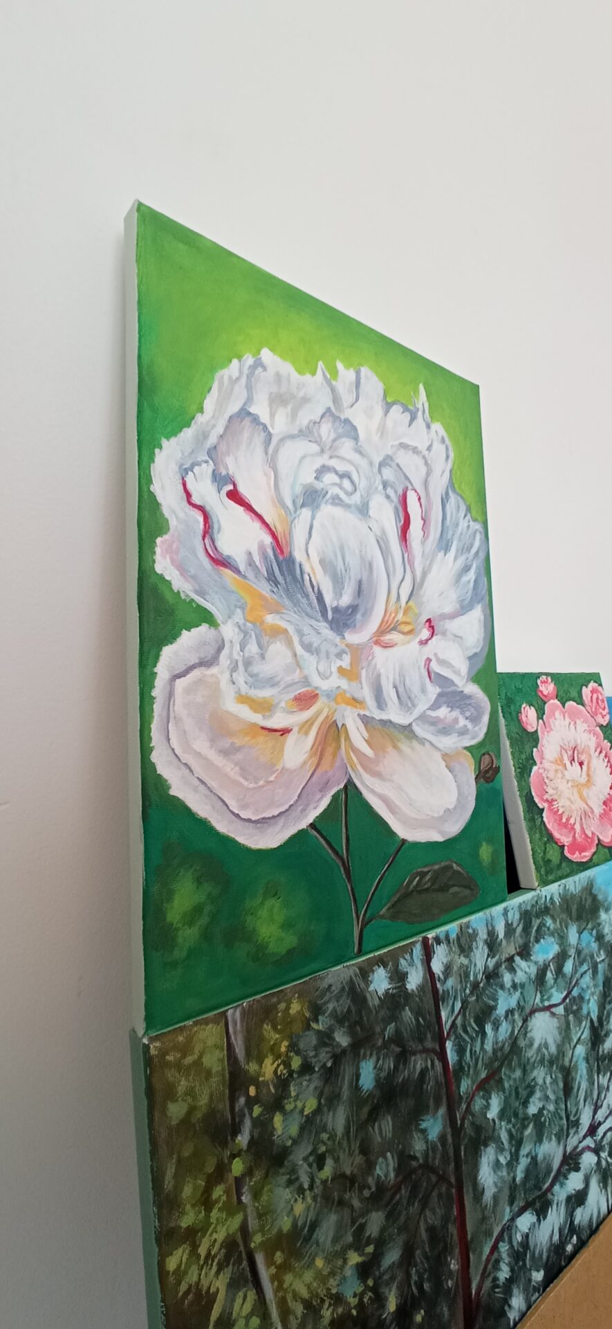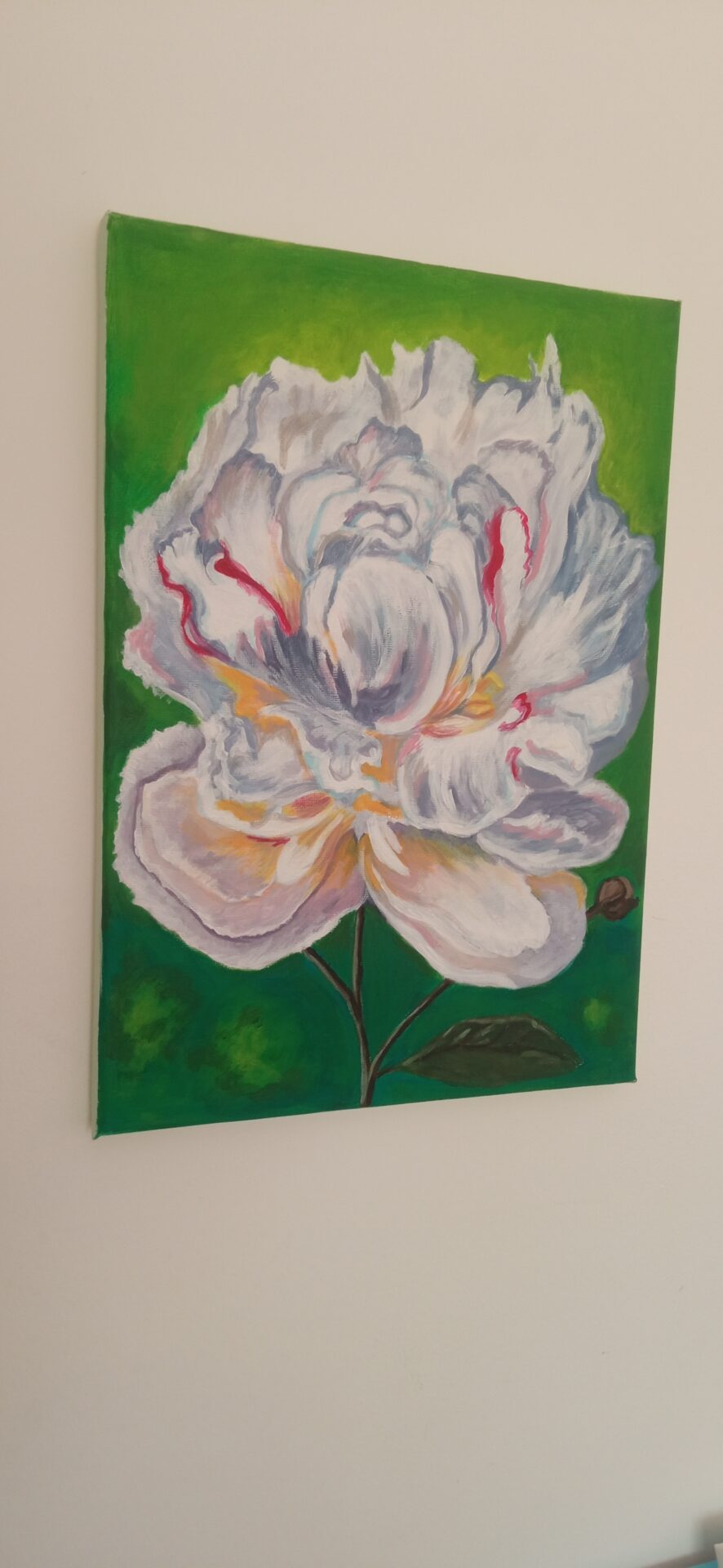 Boki zamalowane na jasny zielony kolor ,obraz gotowy do powieszenia