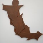 Rzeźba powstała w 2023 roku , podłożem pracy jest sklejka o grubości 12 mm . Całość wykonana jest z 3- ech warstw sklejki. Praca posiada cechy dla stylu futuryzm , fantastyka .Wśród barw dominuje kolor realistycznie ukazujący efekt rdzy , metalu . Efektownie ukazana jest imitacja zacieków , wżery . Kompozycja jest pełna ruchu i dynamiki .Praca powstawała około miesiąca. Pasuje do kazdego typu przestrzeni : industrialnej , minimalistycznej czy kolonialnej .Wymiary rzeźby wys . 102 cm , szer . 100 cm .Praca wymaga zawieszenia w dwóch punktach. .