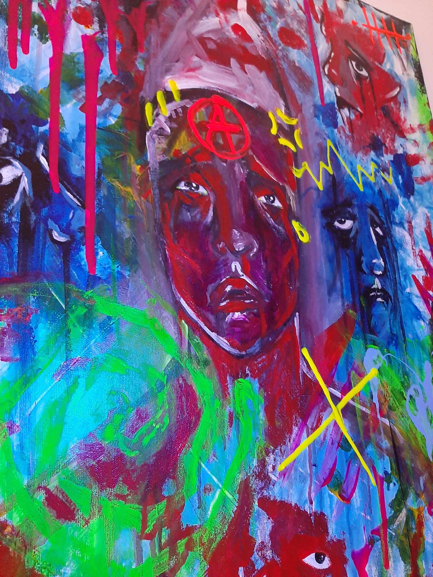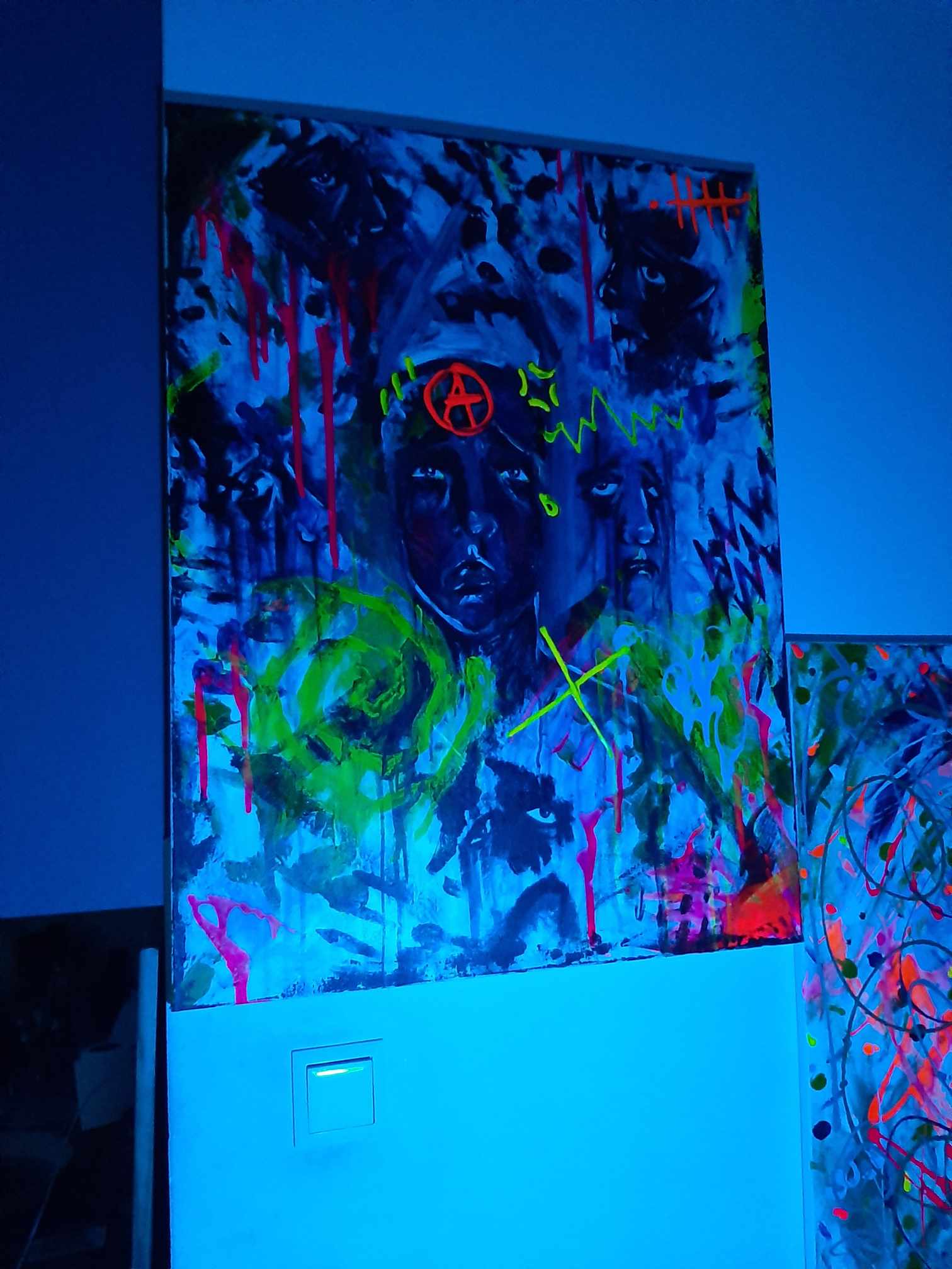 Moje prace będą wyróżniać się charakterystycznymi, mocnymi kolorami, z brokatowymi i metalicznymi akcentami.Obrazy są zabezpieczane specjalnym sprejem, który nadaje im połysk i długowieczność.