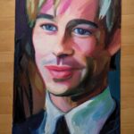 Obraz Brad Pitta. Jego filmy inspirują mnie i właśnie namalowałam ten obraz. 100cm wysokości i 70cm szerokości. Farby olejne na płótnie.
