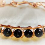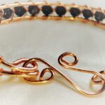 Prezentowana bransoletka wykonana jest z miedzi oraz z dwudziestu koralików noc Kairu o szerokości/długości- 0,5 cm każdy.