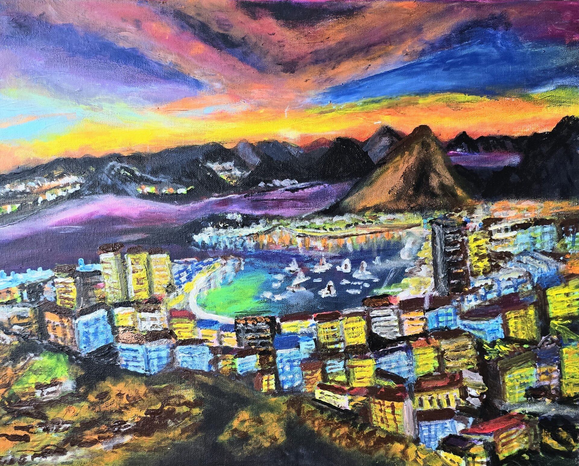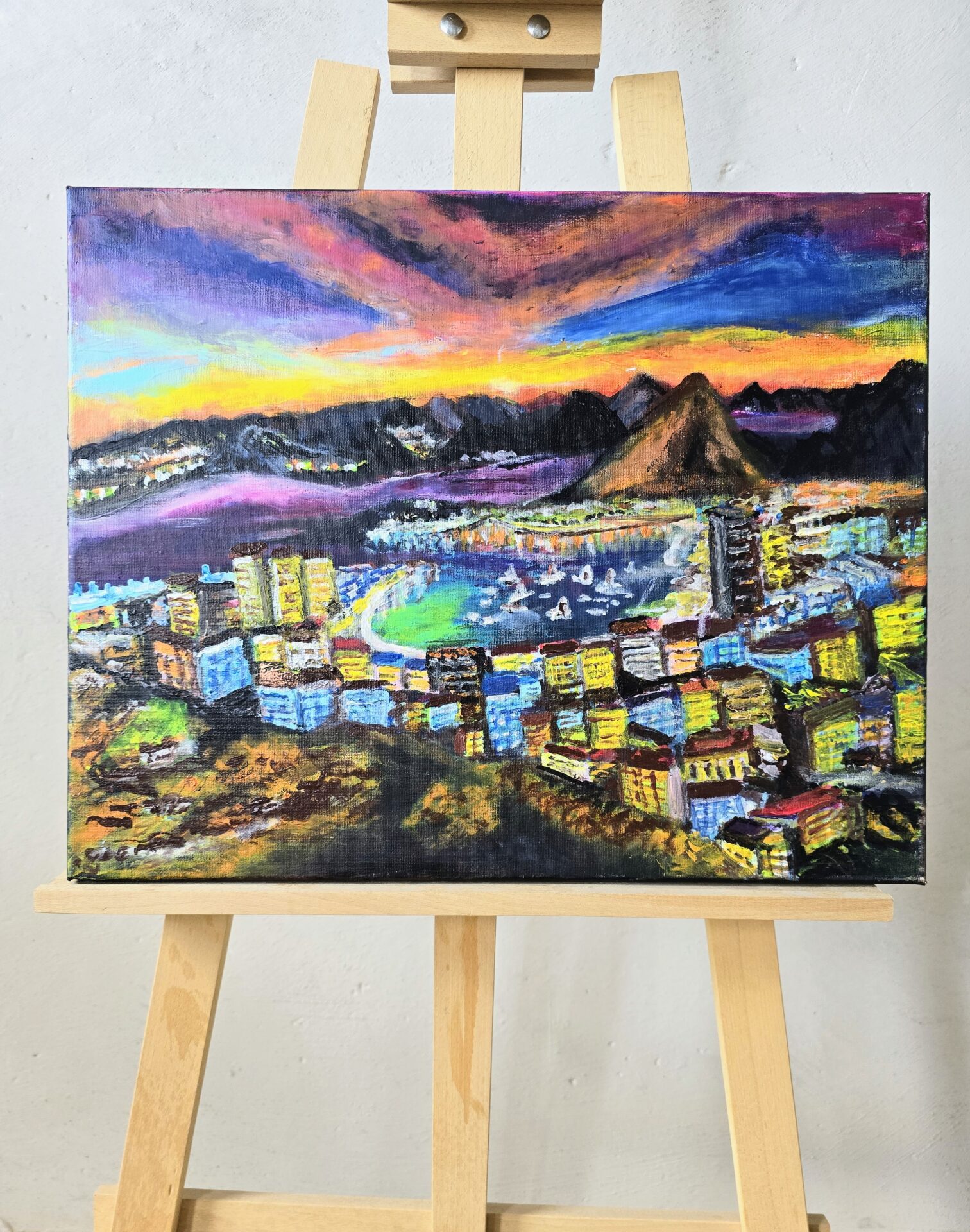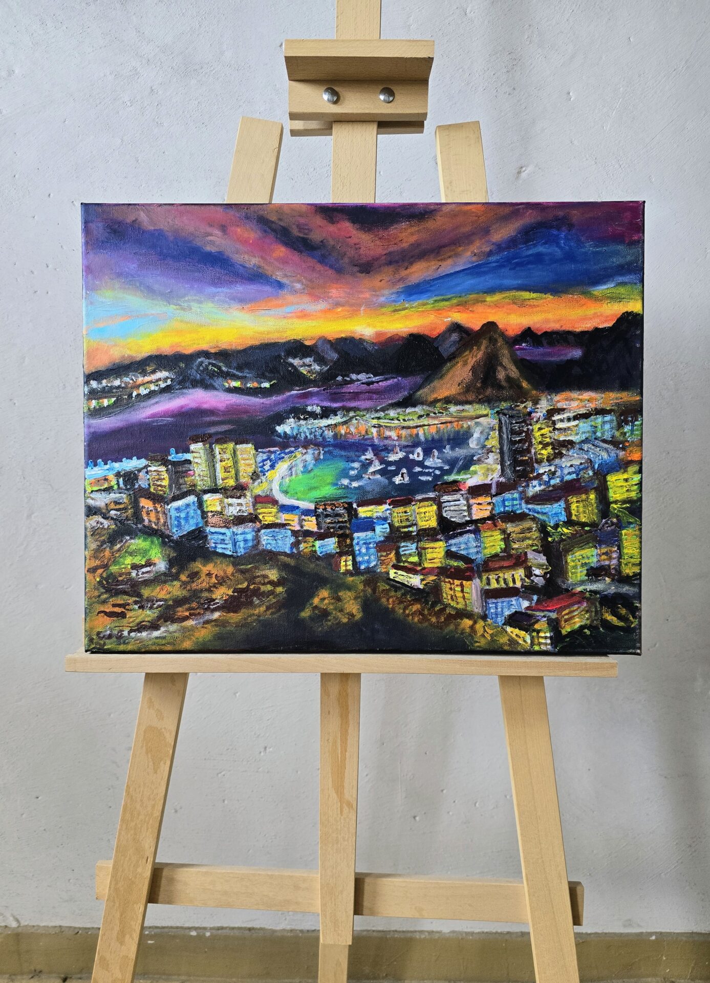 Obraz akrylowy ręcznie malowany na płótnie naciągniętym na bjetram drewniany.