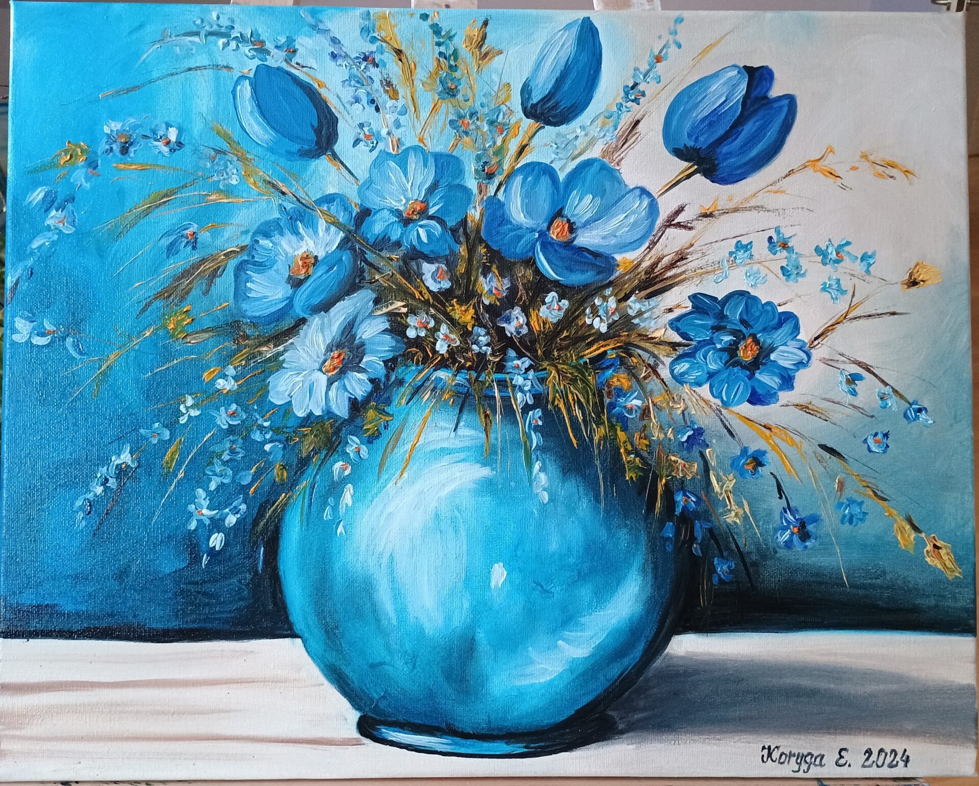 Obraz namalowany jest farbami olejnymi Van Gogh i zabezpieczony werniksem. Grubo nakładana farba daje świetny efekt głębi. Wymiary obrazu to 40x50cm.