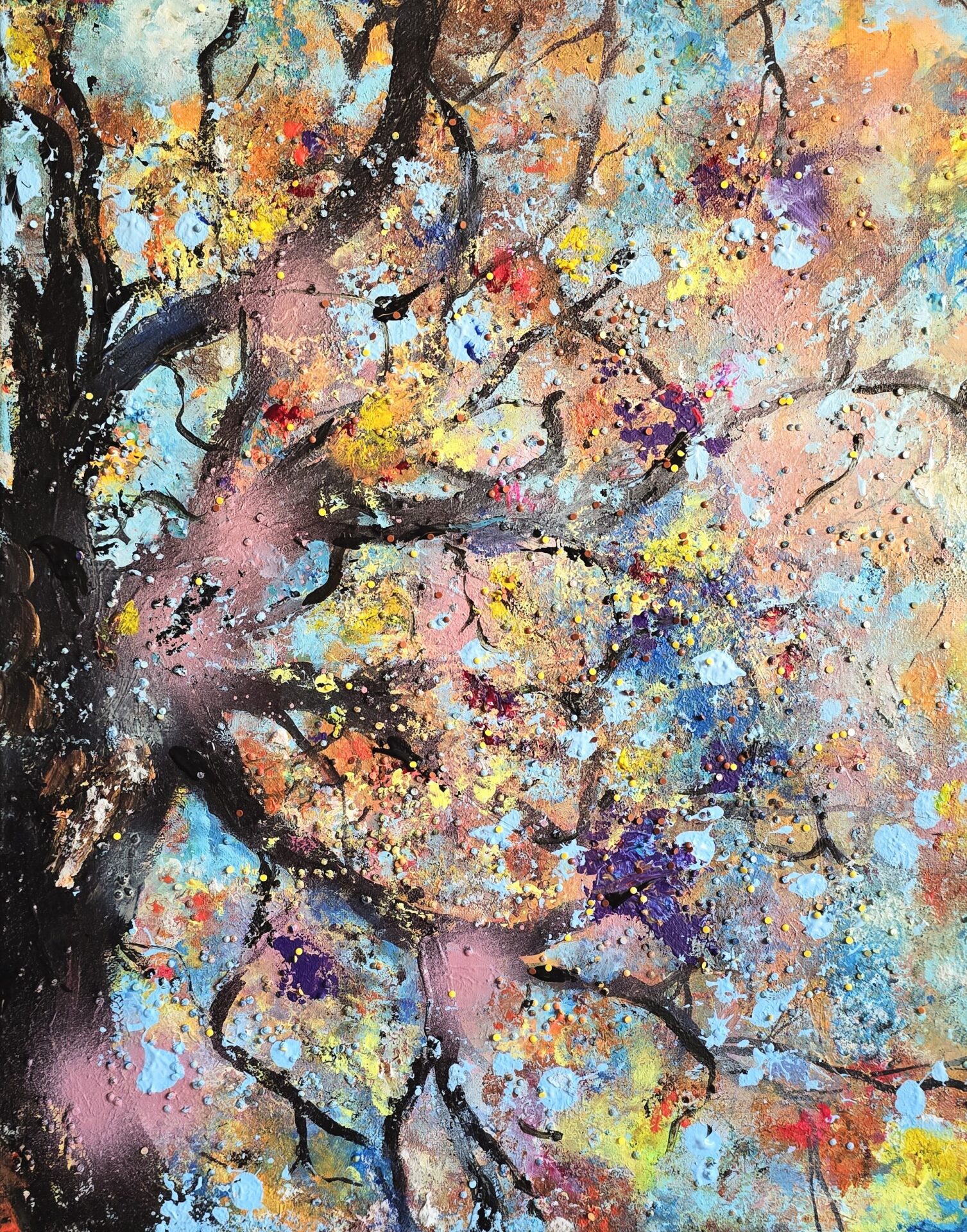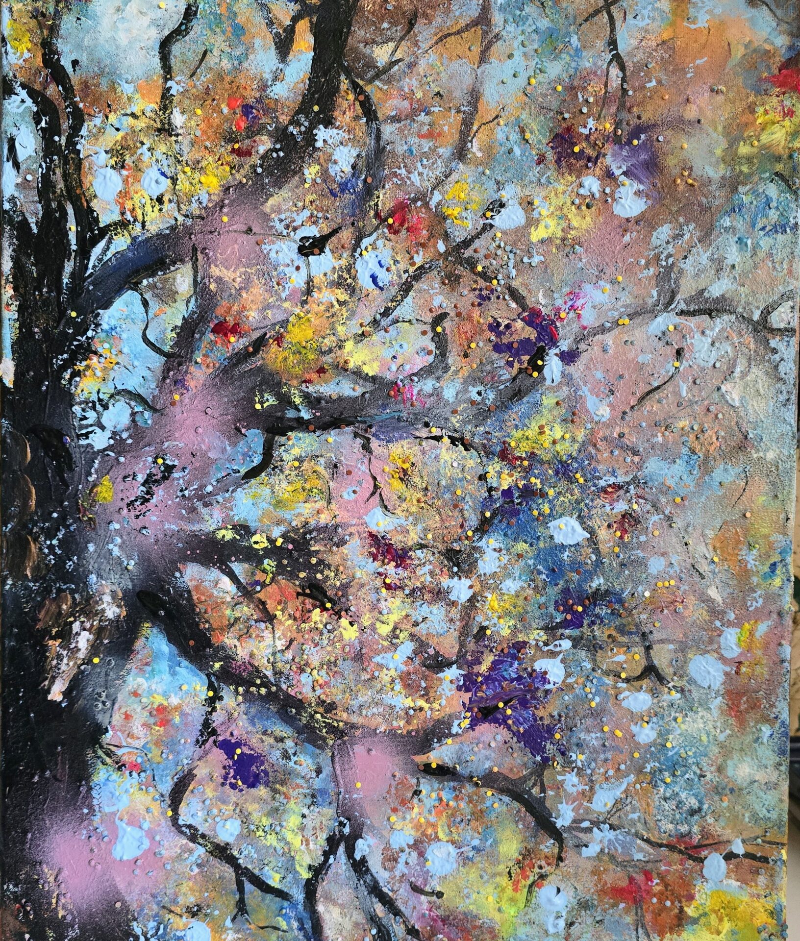 Obraz akrylowy recznie malowany na płótnie naciągniętym na bjetram drewniany.