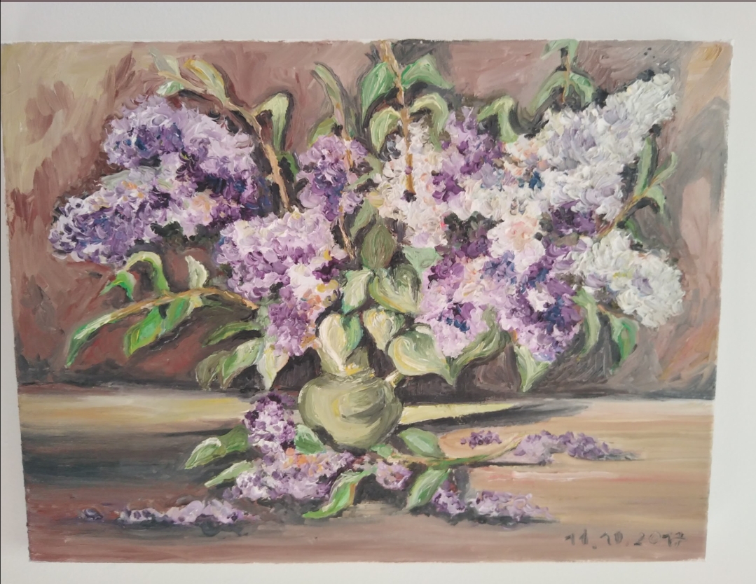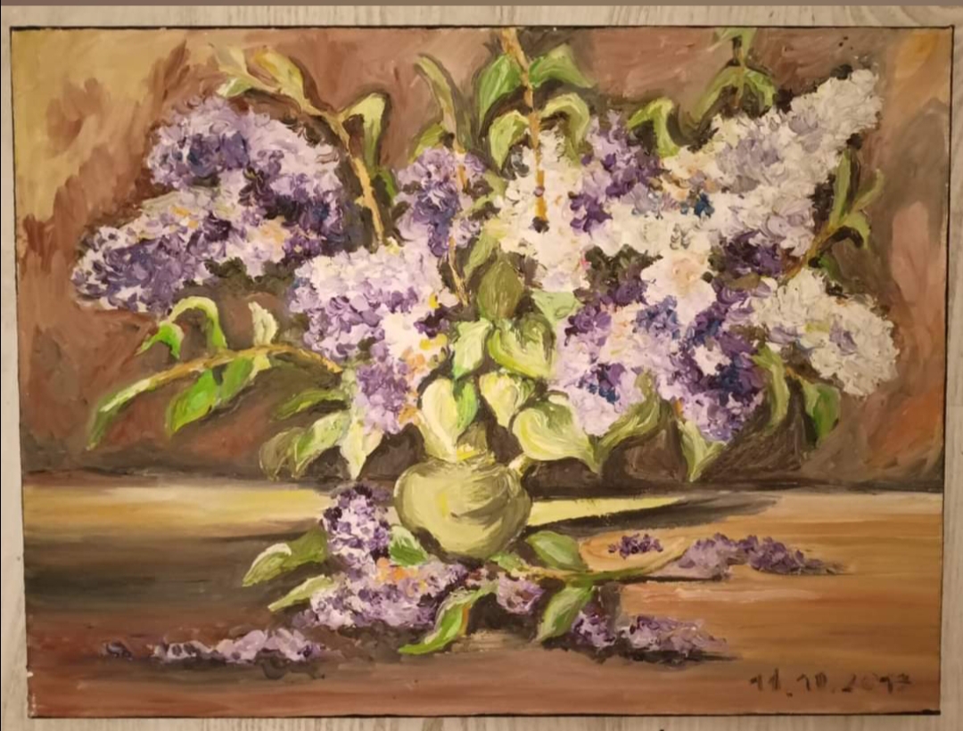 Obraz olejny przedstawiający Bzy, zawerniksowany, boki zamalowane, obraz na wymiary 40cmx30cm, malowany na podstawie znanego obrazu