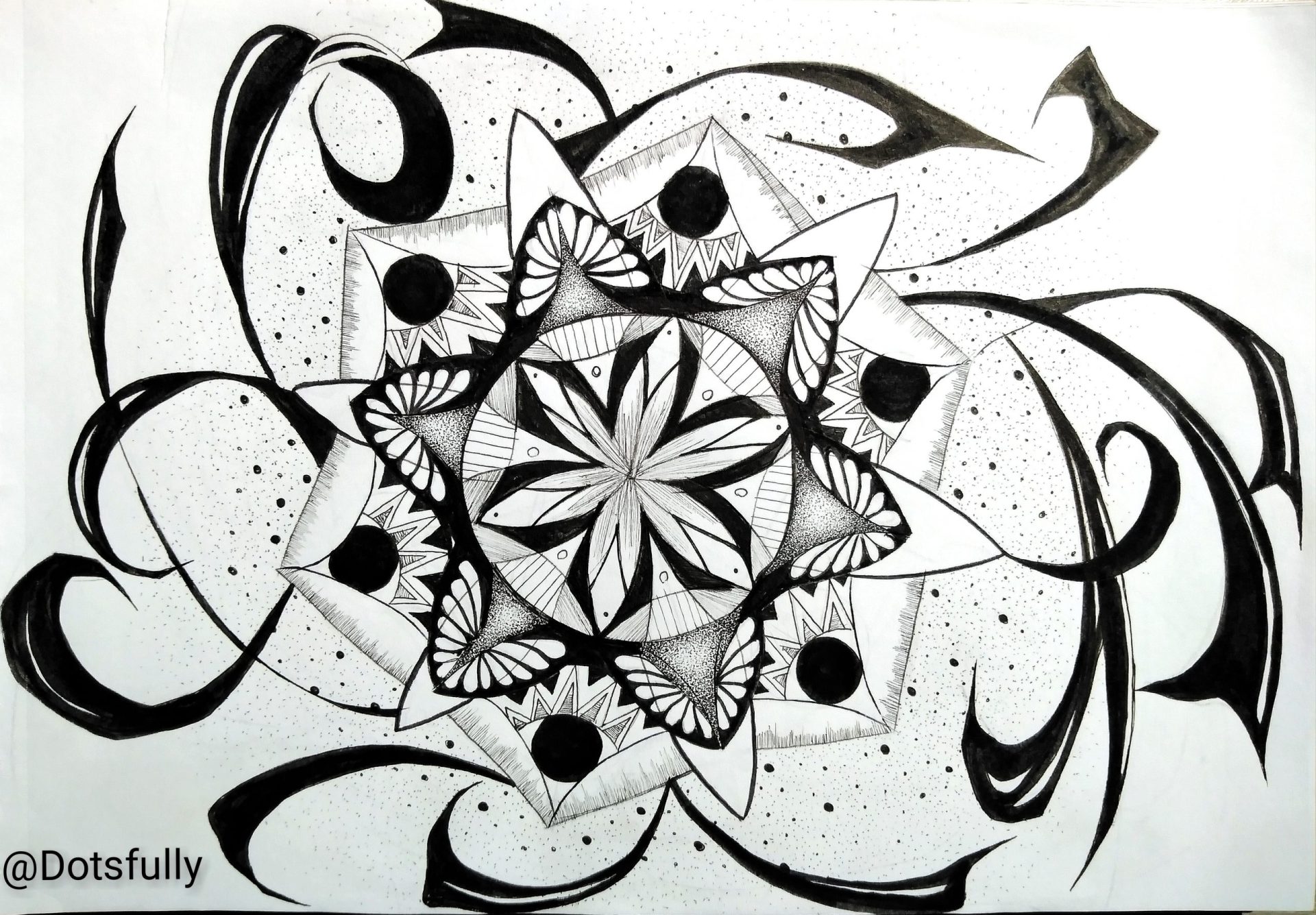 Wizja chaosu przedstawiona w postaci mandali, niepasujące do siebie elementy zaczynają tworzyć struktury.