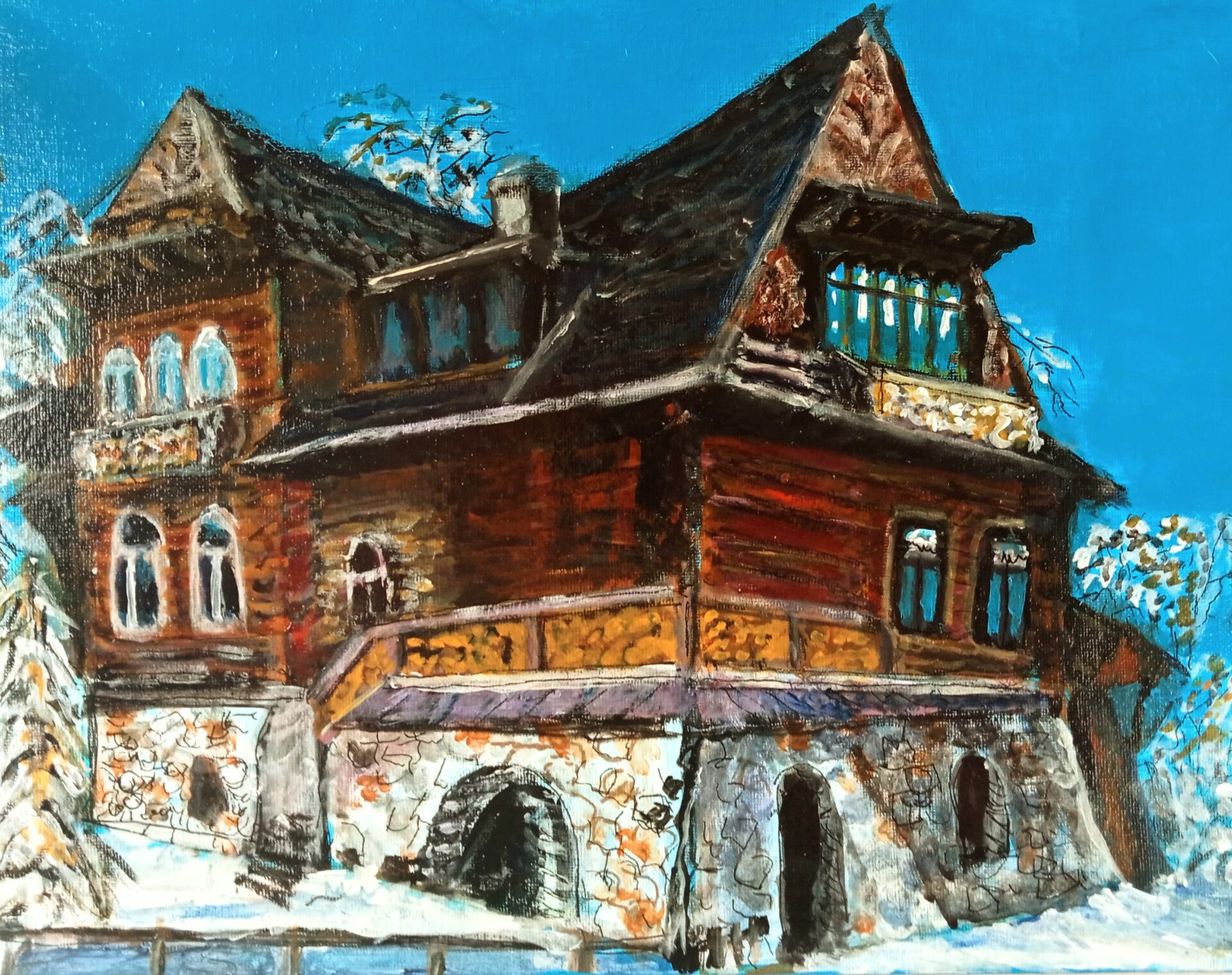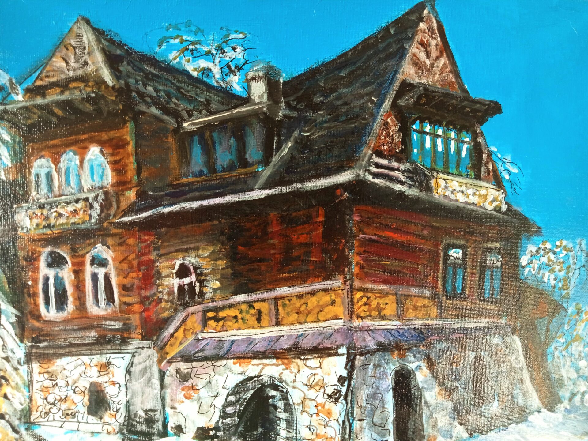 Obraz akrylowy ręcznie malowany na płótnie naciągniętym na bjetram drewniany.
