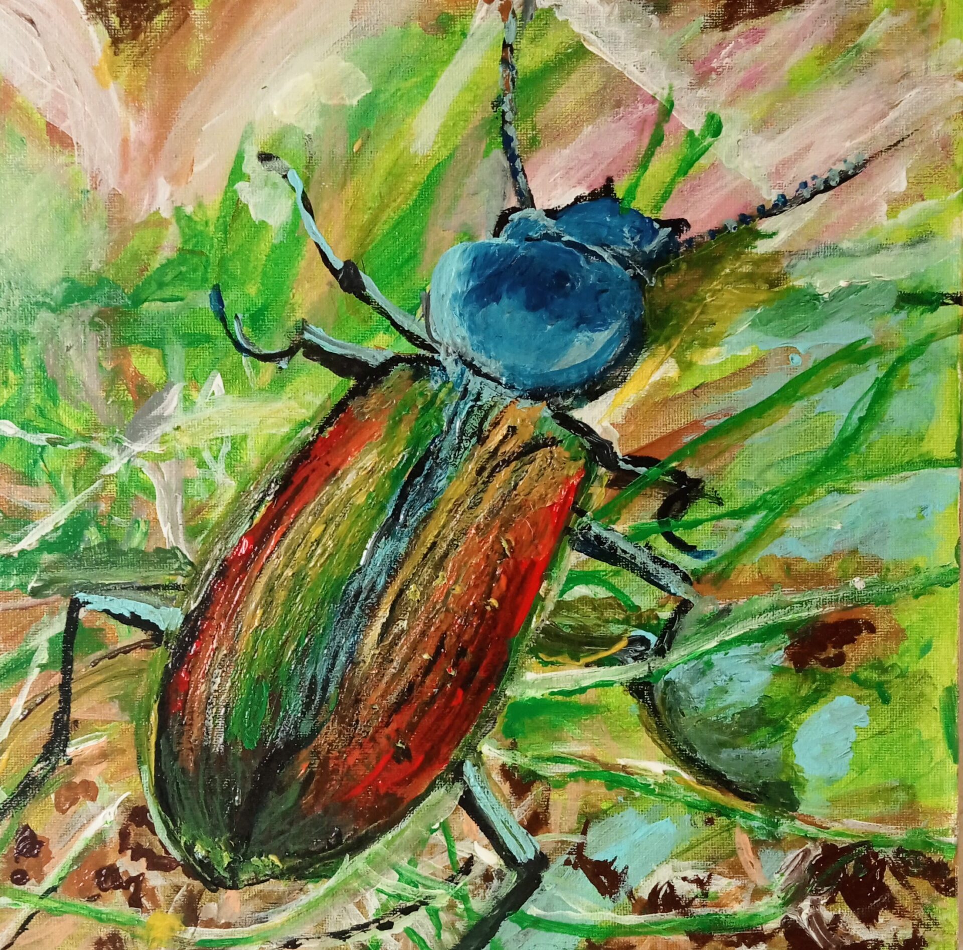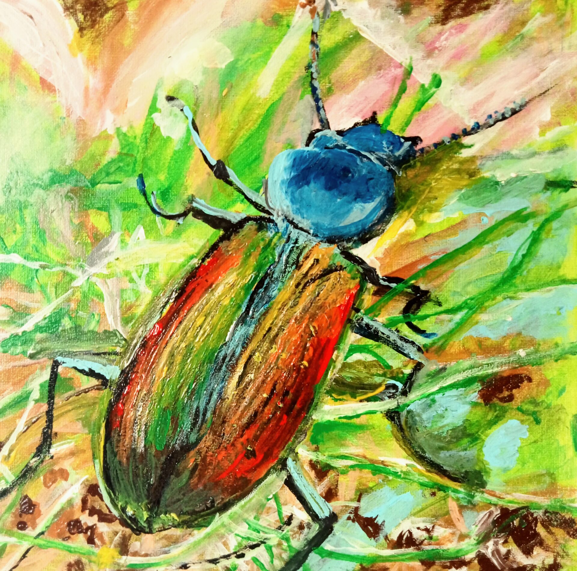 Obraz akrylowy ręcznie malowany na płótnie naciągniętym na bjetram drewniany.