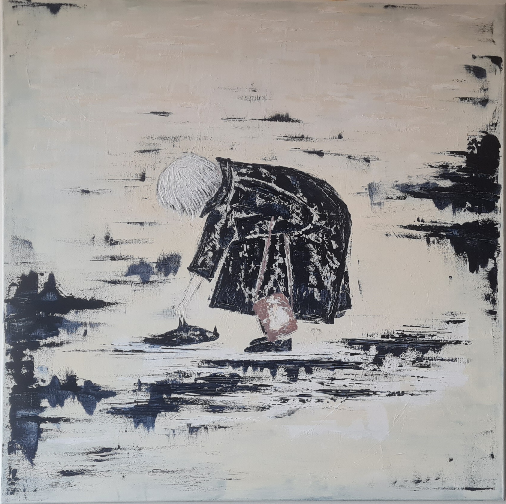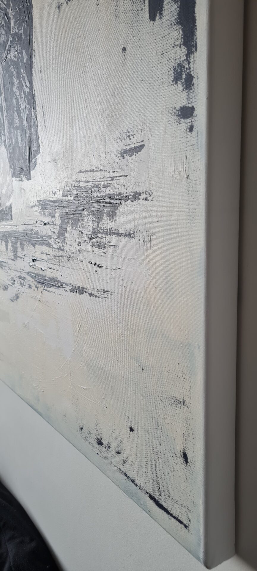 Akryl na płótnie bawełnianym, boki zamalowane na biało. Gdzieniegdzie widoczna struktura.
