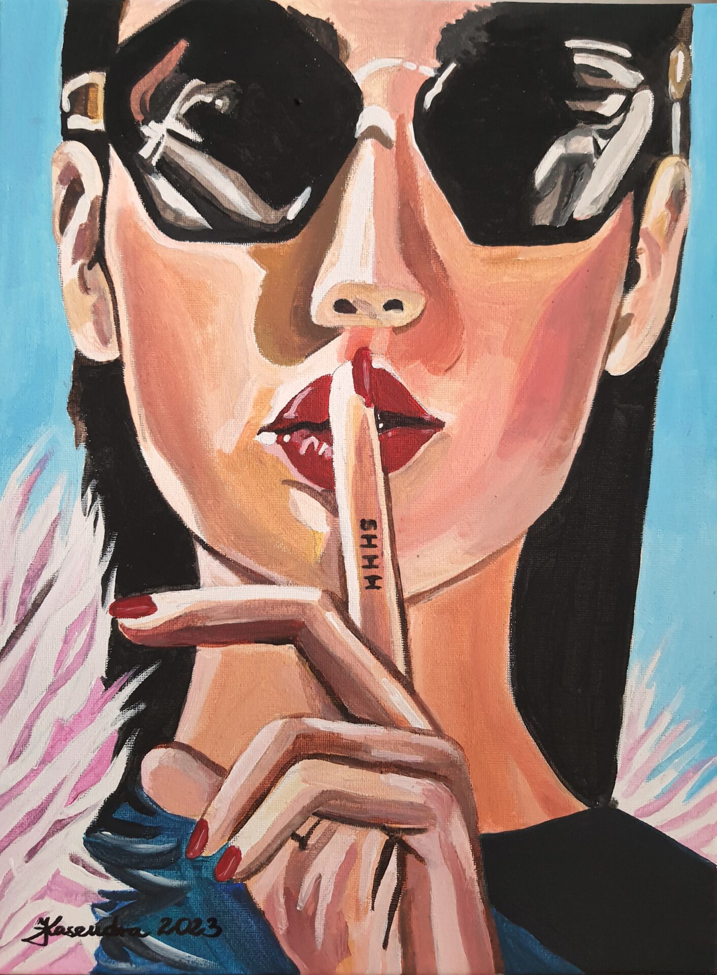Obraz namalowany został profesjonalnymi farbami akrylowymi holenderskiej firmy Talens oraz angielskiej firmy Rowney na bardzo dobrej jakości płótnie firmy Koh-i-noor. Akryl powstał z okazji wystawy w nowo powstałej promującej współczesną sztukę galerii „Kwadrat” i sygnowany jest z przodu monogramem artysty Jan Kasendra 2023. Praca ta może być miłym prezentem dla miłośników portretu kobiecego oraz odważnego, nowoczesnego malarstwa akrylowego.