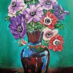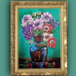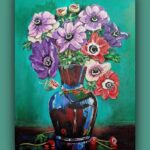 „Córki wiatru” (Anemony ) Malowany techniką olejną na płótnie malarskim. Rok powstania obrazu 2024 Wymiary obrazu 30 cm x 41 cm bez ramy, ale ma zamalowane boki w kolorze tła płótna (obrazu) co wskazuje, że dzieło można zawieść na ścianie nawet bez ram. Zawieszony obraz na ścianie bez ram „Córki wiatru” nie tracą na swoim pięknym wyglądzie. Obraz jest zabezpieczony werniksem co oznacza jego długa żywotność i nie zniszczalność farb i kolorów. Autorem dzieła jest Teresa Kopańska artysta – malarz. Z przodu obrazu jest sygnatura autorki, również na odwrocie płótna. Serdecznie zapraszam do zakupu nie tych pięknych kwiatów zwane potocznie Anemonami, czyli „Córkami wiatru” Obraz charakteryzuje się wyrazistością kolorów i barw. Obraz przedstawiony jest do wglądu w wirtualnych ramach.