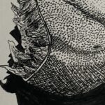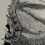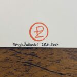 Rysunek piórkiem. Czarny tusz na papierze. Praca z cyklu „Przedmioty w ostrym świetle” . Praca sygnowana podpisem i stemplem.