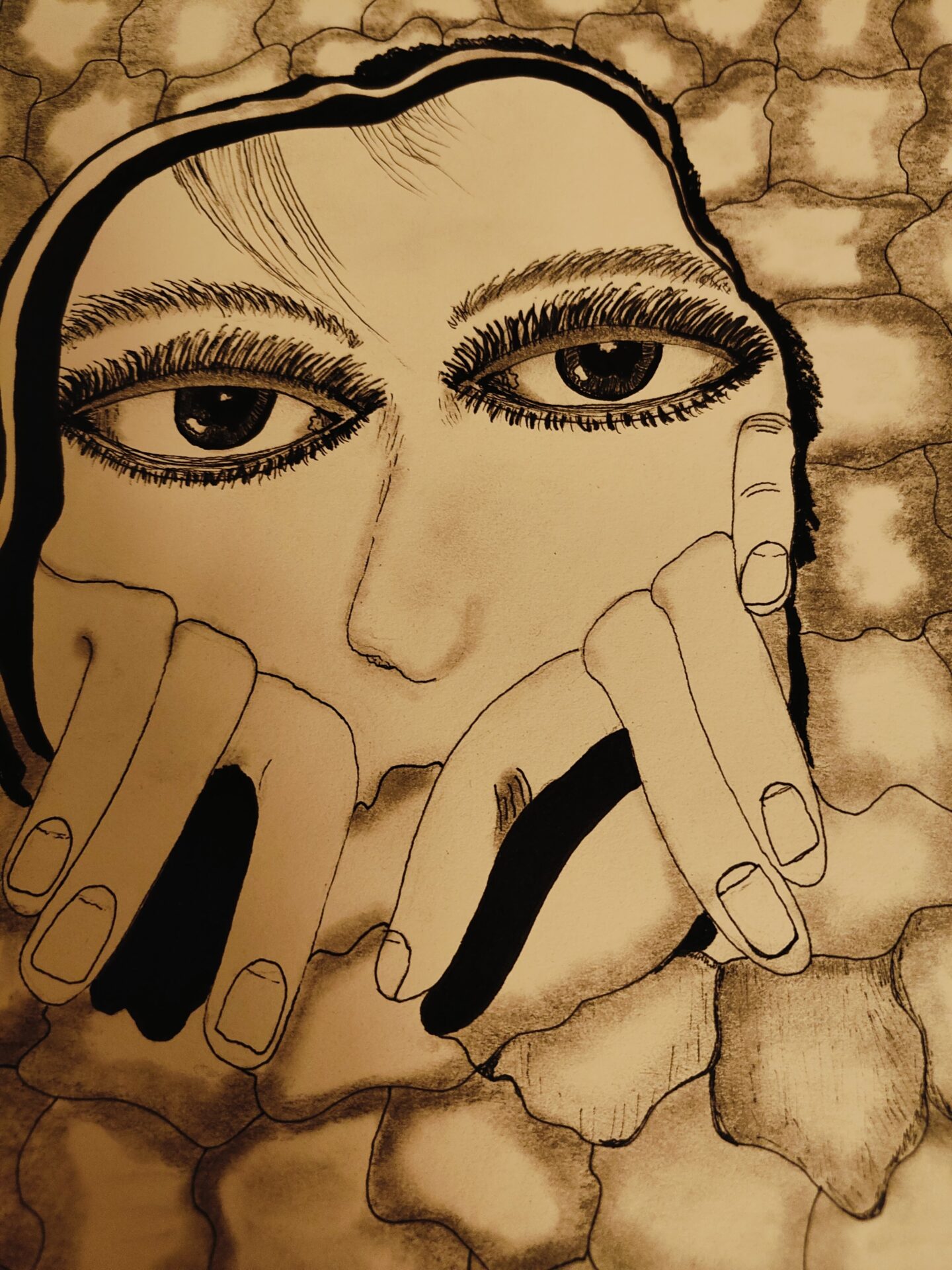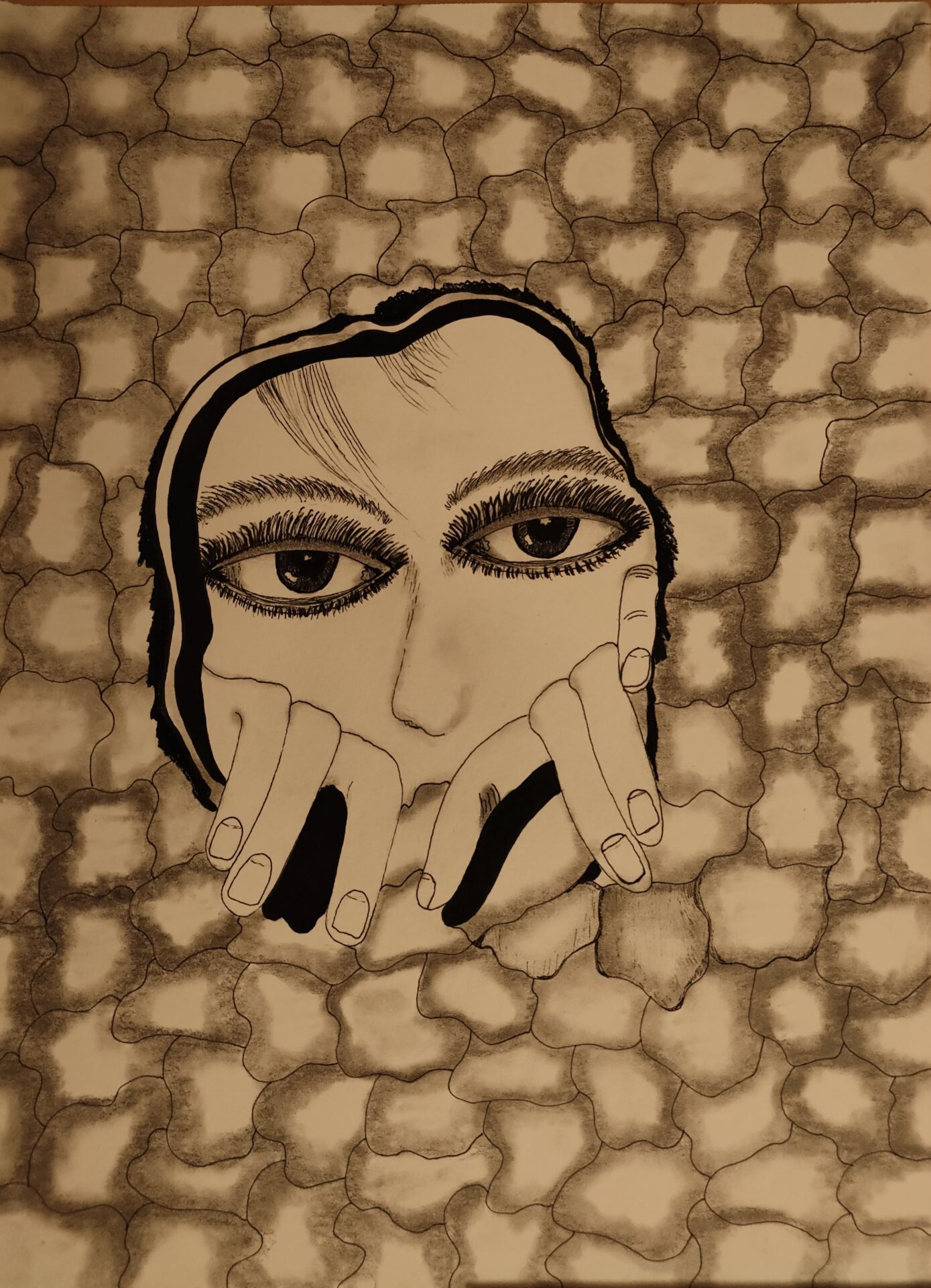 Obraz wykonany czarnymi cienkopisami oraz ołówkiem. Papier kolor ivory. Rozmiar 30×40 cm.