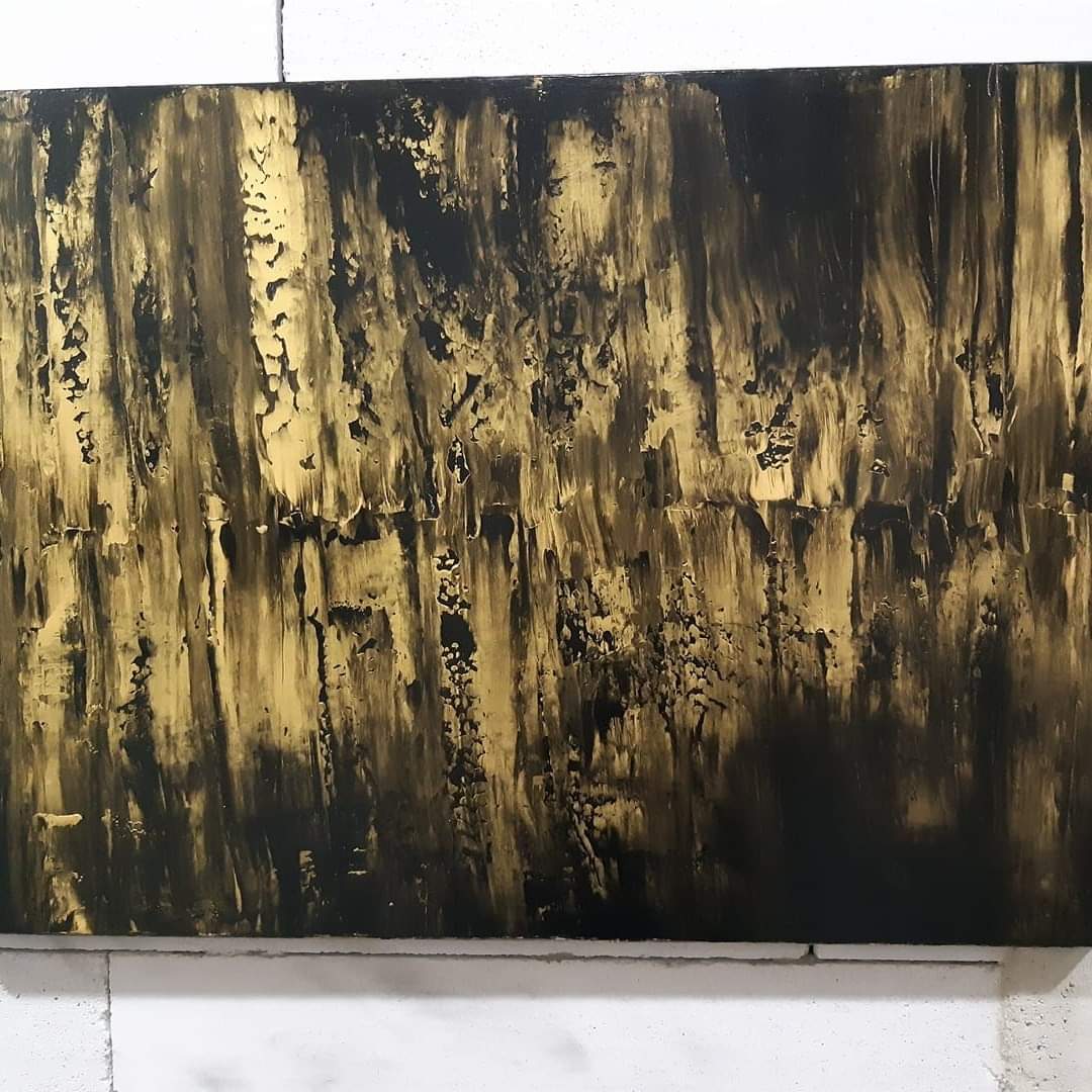 Obraz malowany farbami akrylowymi, Czerń i złoto. Nie wymaga ramy. Możliwość negocjacji ceny.