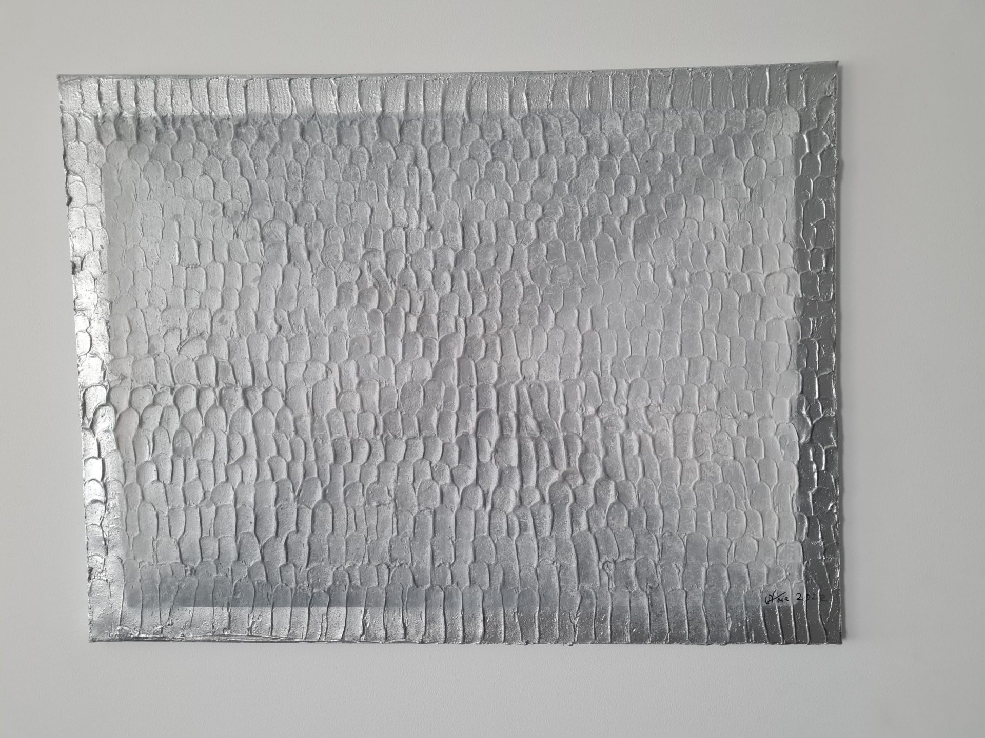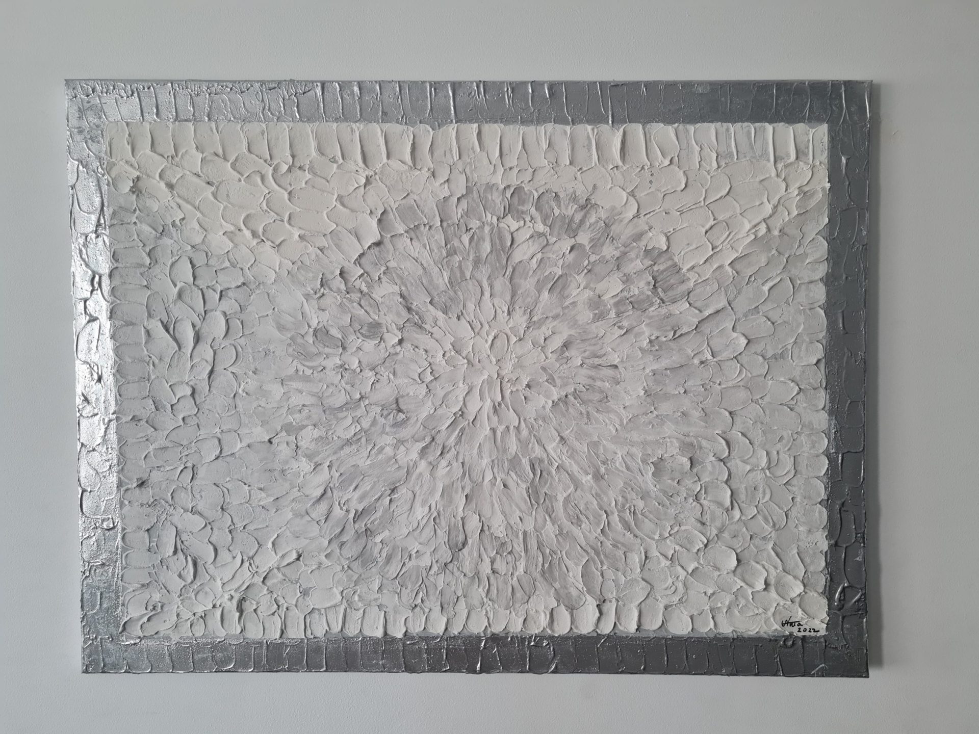 Obraz stworzony z gipsu i akrylu. Kolorystyka szaro – srebrna. Cena dotyczy 2 sztuk.