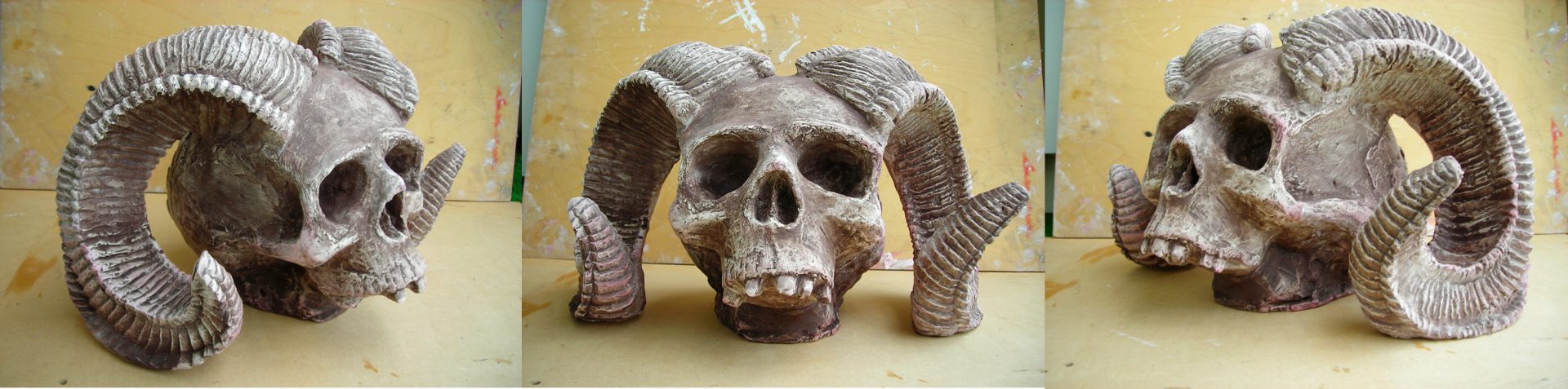 Czaszka Szatana odlana z gipsu alabastrowego pierwotnie robiona w glinie. Pomalowana brązową farbą emaliową.