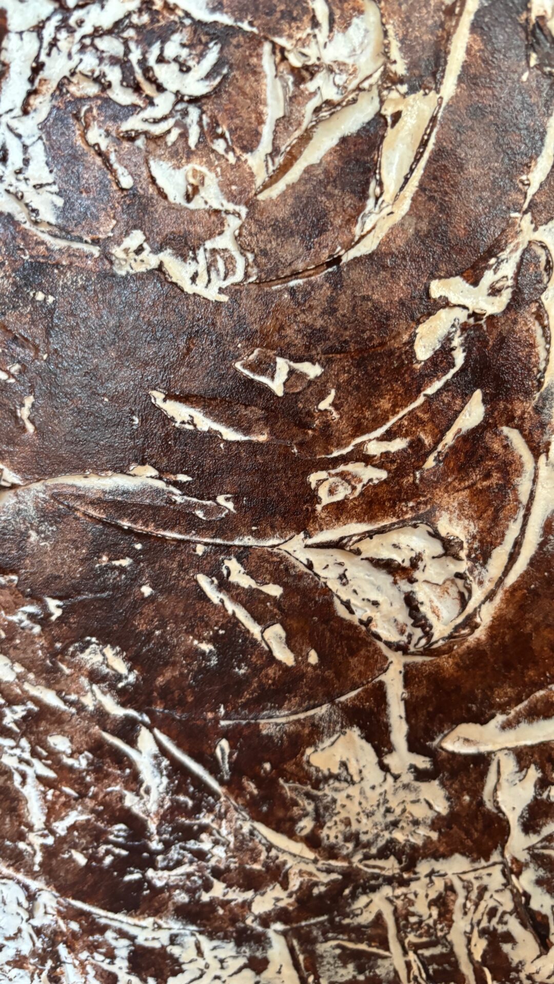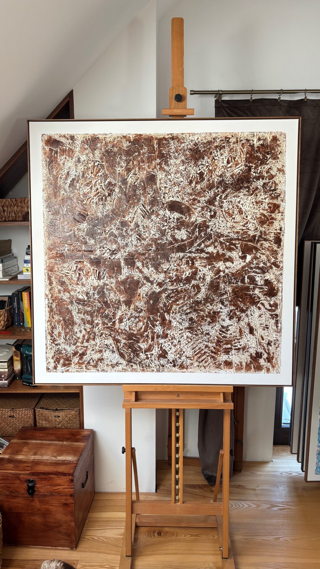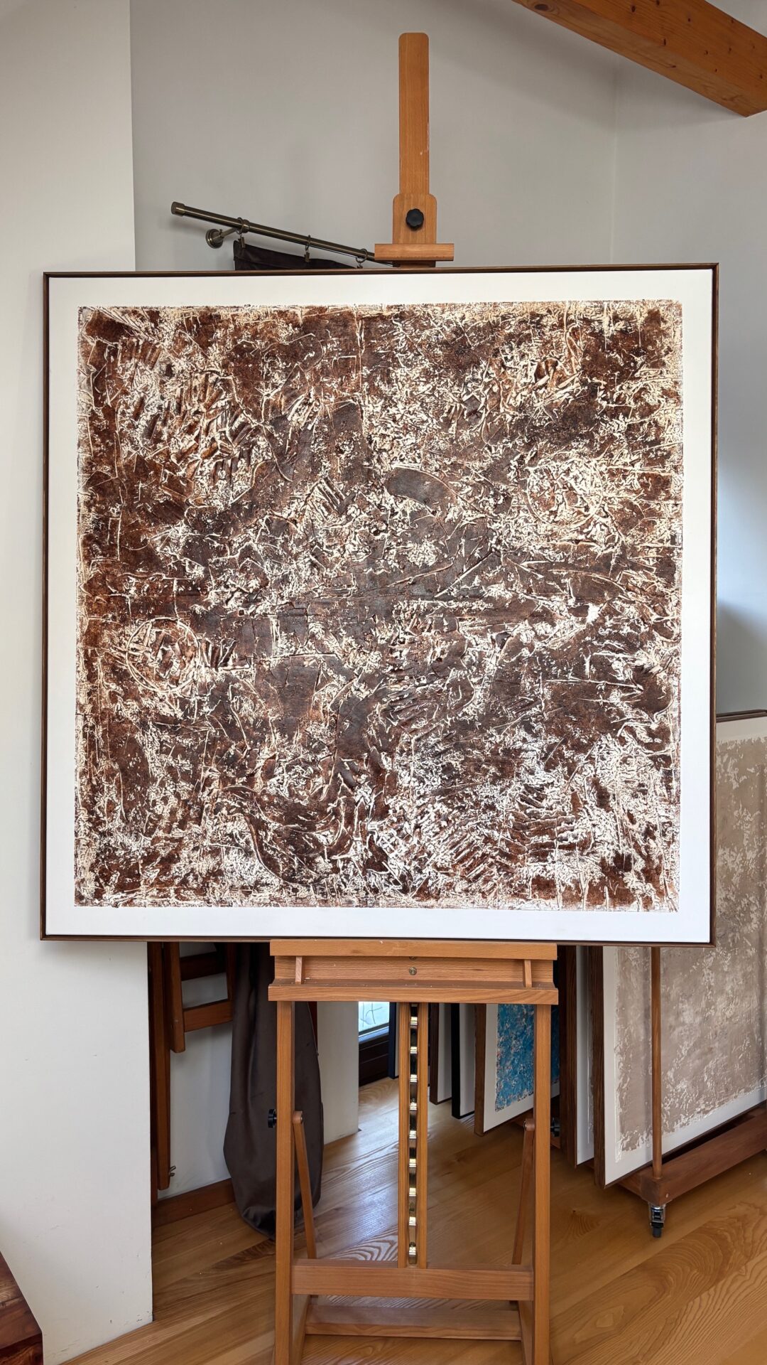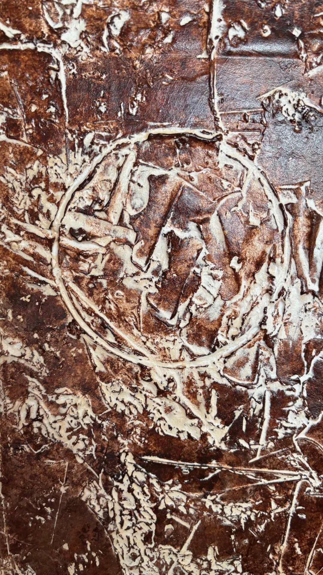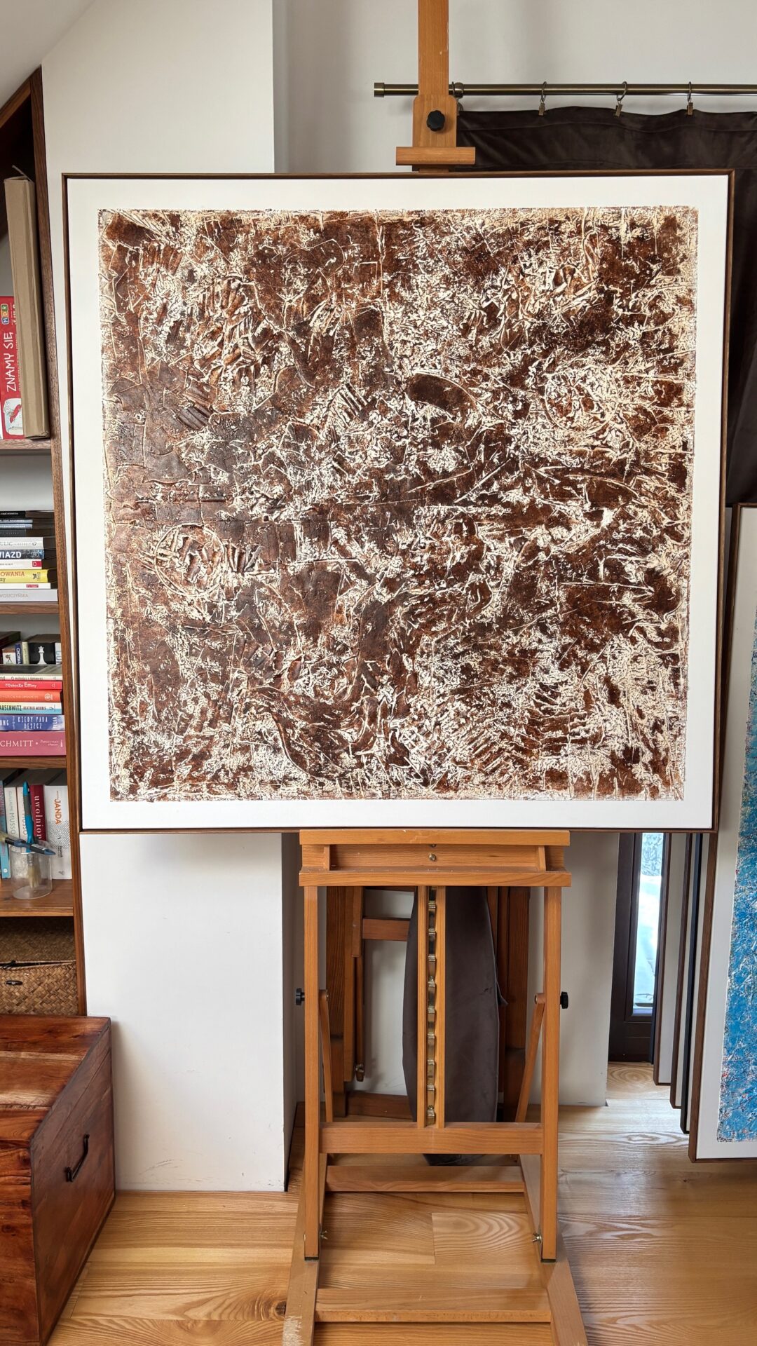 Obraz abstrakcyjny o strukturalnej formie. Oprawiony , zabezpieczony werniksem.