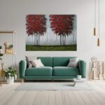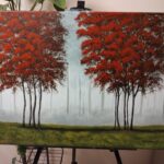 Przedstawiam obraz mojego autorstwa, pt.: ” Czerwone drzewa”, namalowany profesjonalnymi farbami akrylowymi ( firm: Winsor & Newton, Liquitex oraz Amsterdam) na podobraziu bawełnianym 3D ( oznacza to, że sosnowa blejtrama na którą naciągnięte jest płótno jest gruba – szerokość 3 cm) pokrytym grubym włoskim płótnem o doskonałej jakości. Boki obrazu są zamalowane ( przedłużenie pejzażu). Obraz nie wymaga oprawy, można swobodnie go powiesić na ścianie. Został wykończony i zabezpieczony werniksem z połyskiem. Obraz prezentuje się bardzo efektownie i oryginalnie. Podpis autora znajduje się na awersie i rewersie. Wszystkie materiały użyte do stworzenia obrazu są wysokiej jakości aby Kupujący mógł cieszyć się nim przez bardzo długie lata.