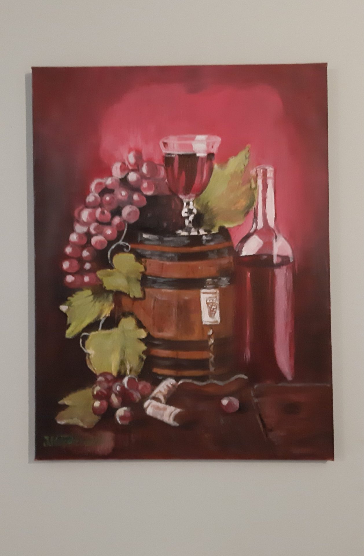Obraz ręcznie malowany farbami akrylowymi na płótnie, zabezpieczony matowym werniksem, sygnowany, technika autorska, boki obrazu pomalowane w kolorze tła.