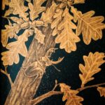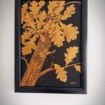 „Dąb” to czarno-zloty obraz z kolekcji „Złota Natura”. Obraz namalowany farbami akrylowymi z dodatkiem złotego brokatu. Oprawiony w drewnianą ramkę. Kompozycja dostojna, harmonijna.
