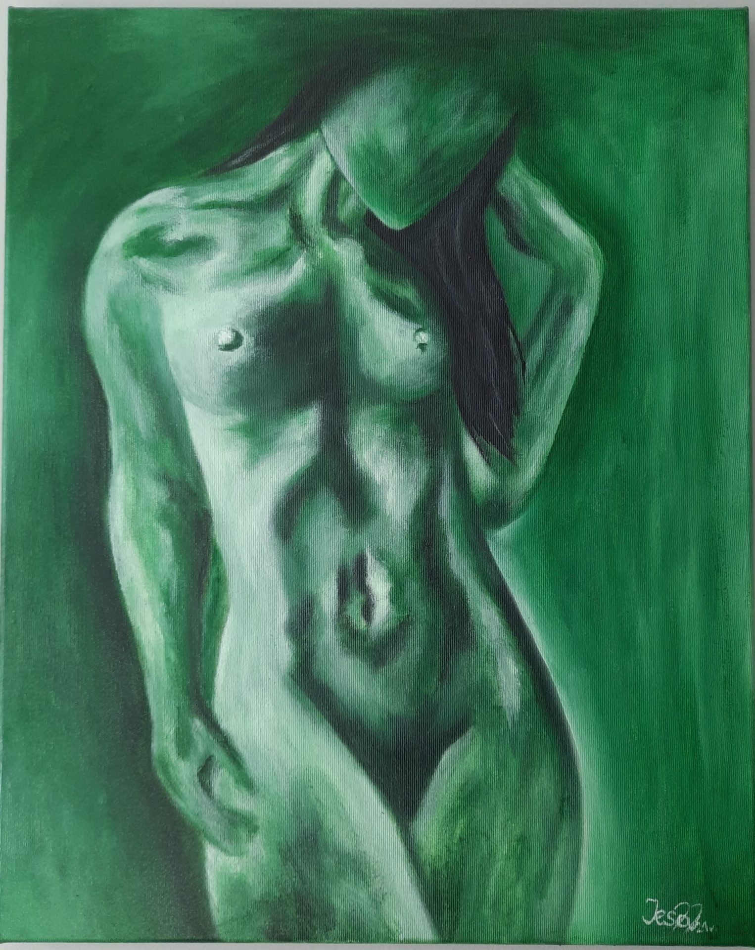 Nuta tajemniczości i elegancji. Akt akrylowy na płótnie bawełnianym. Nie posiada ramy, boczne krawędzie płótna zamalowane. Obraz zawerniksowany werniksem z połyskiem. Obraz jest sygnowany z przodu monogramem autora/Jesa2021. Praca może dopełnić wnętrze sypialni, jak i salonu. Zapraszam do kontaktu klaudia.jesa@onet.pl :))