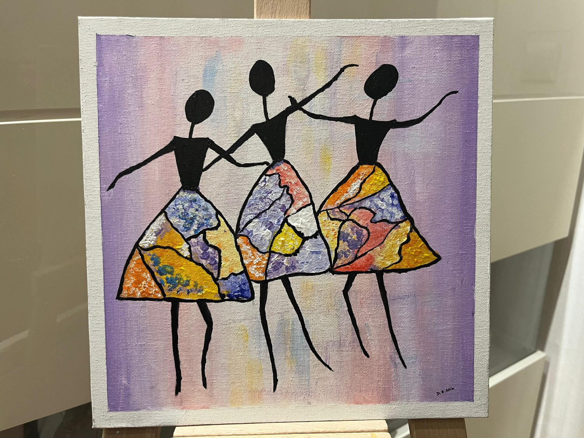 Obraz malowany na płótnie na tzw.” kafelku” o wymiarach 25 x 25, subtelne, pastelowe tło