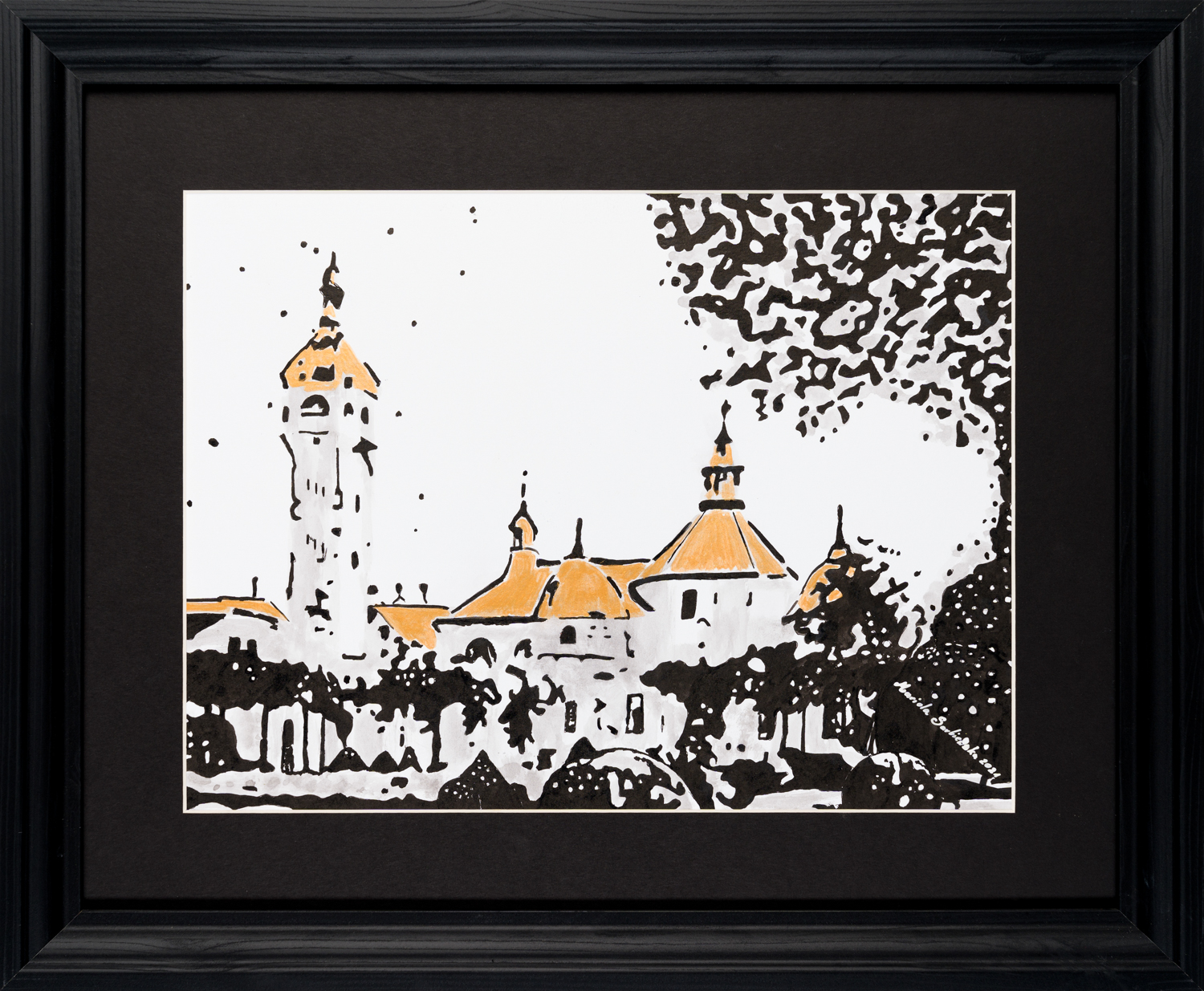 Obraz „Dawny Sopot Latarnia Morska I”2021 należy do cyklu prac przedstawiających motywy dawnego i współczesnego Sopotu, Gdańska oraz Gdyni. Każda praca jest niepowtarzalna, wykonana piórkiem, tuszem oraz farbami akwarelowymi i akrylowym na papierze. Wszystkie prace są sygnowane i oprawione w passe-partout oraz czarną elegancką ramę o wymiarach 57 x 47 cm, gotowe do powieszenia.