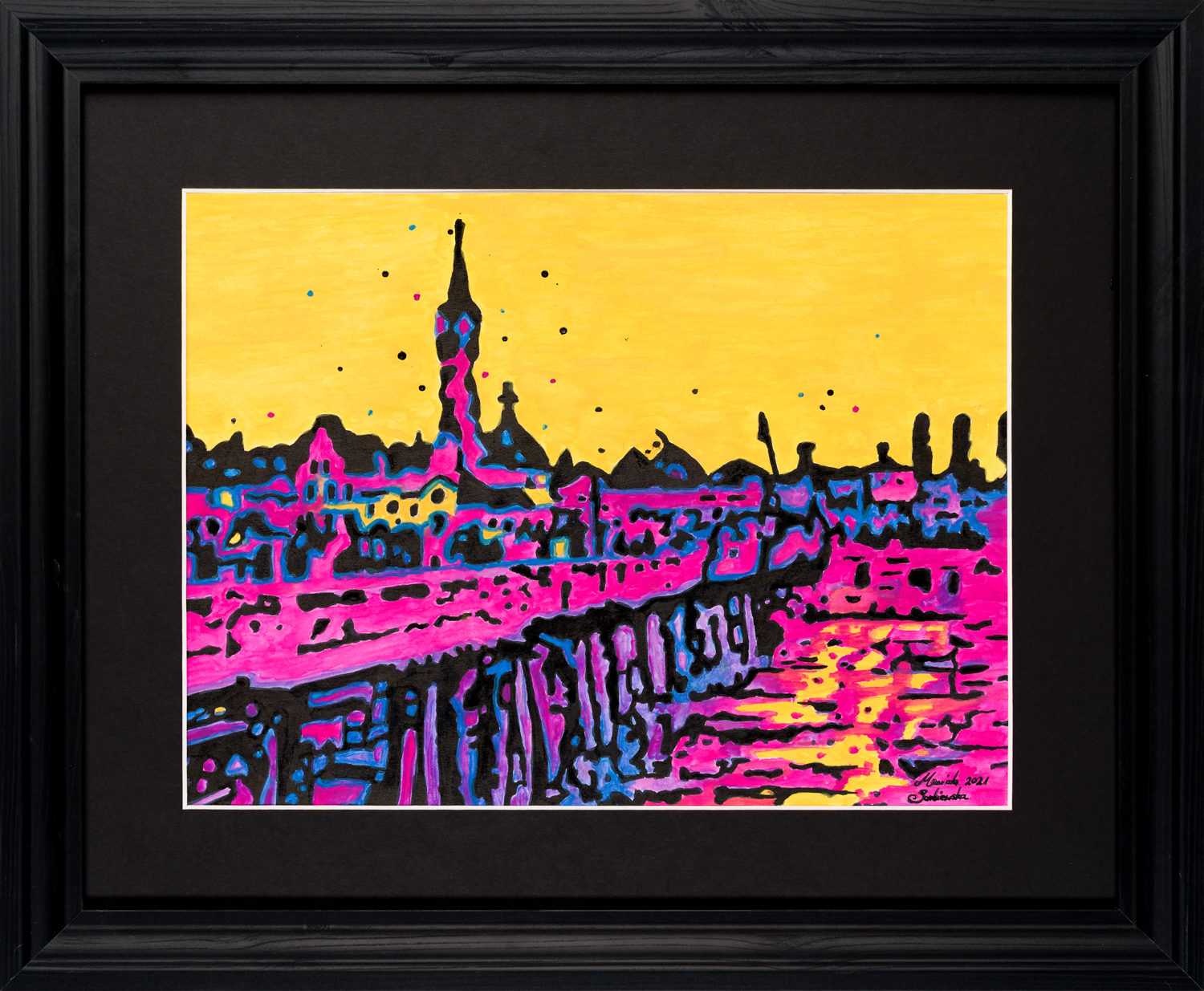 Praca „Dawny Sopot Molo i Latarnia Morska”, 2021 należy do cyklu obrazów przedstawiających motywy dawnego i współczesnego Sopotu, Gdańska oraz Gdyni. Praca pozwoli podkreślić indywidualny charakter Twojego wnętrza oraz podnieść jego prestiż. Prace są niepowtarzalne, wykonane piórkiem, tuszem oraz farbami akwarelowymi i akrylowymi. Każda praca jest sygnowana i oprawiona w passe-partout oraz czarną elegancką ramę o wymiarach 57×47 cm