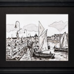 „Dawny Sopot Żagle Molo” 2021 należy do cyklu obrazów przedstawiających motywy dawnego i współczesnego Sopotu, Gdańska oraz Gdyni. Praca pozwoli podkreślić indywidualny charakter Twojego wnętrza oraz podnieść jego prestiż. Prace są niepowtarzalne, wykonane piórkiem, tuszem oraz farbami akwarelowymi i akrylowymi. Każda praca jest sygnowana i oprawiona w passe-partout oraz czarną elegancką ramę o wymiarach 57×47 cm gotowa do zawieszenia.