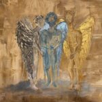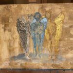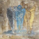 Obraz Debata Aniołów został namalowany farbami akrylowymi na płótnie rozpostartym na krosnach drewnianych o wymiarze 40×60 cm. Postacie Aniołów w srebrnym , błękitnym i złotym kolorze. Skrzydła z widoczną fakturą. Anioły stoją na błękitnej chmurze i obradują. Może o Twoim losie, może o losie świata, a może o szansie jaką przed Tobą postawiły, abyś mógł ją wykorzystać.