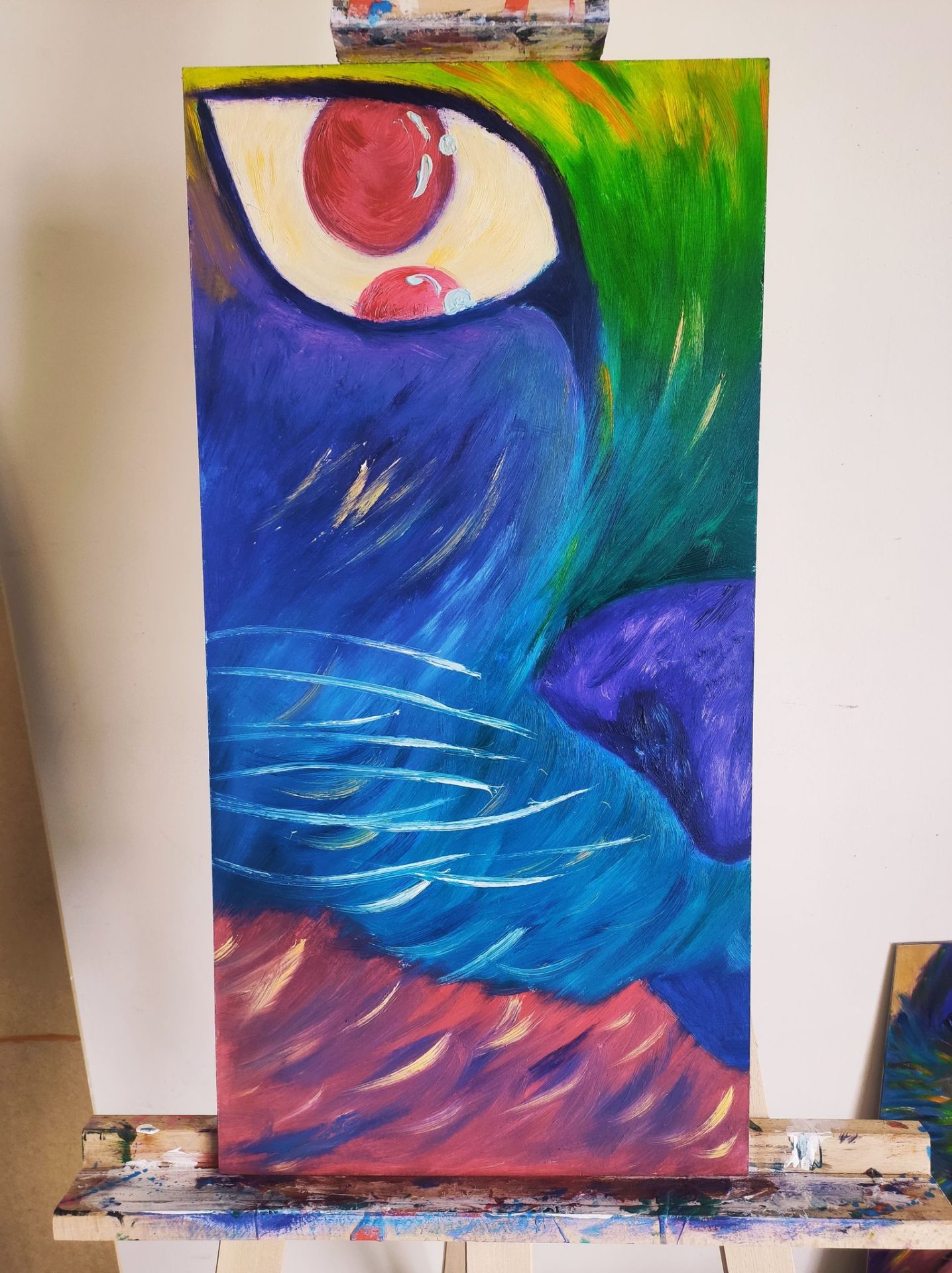 Obraz malowany farbami olejnymi w rozmiarach 30 cm szerokość i 60cm wysokość na płycie HDF.