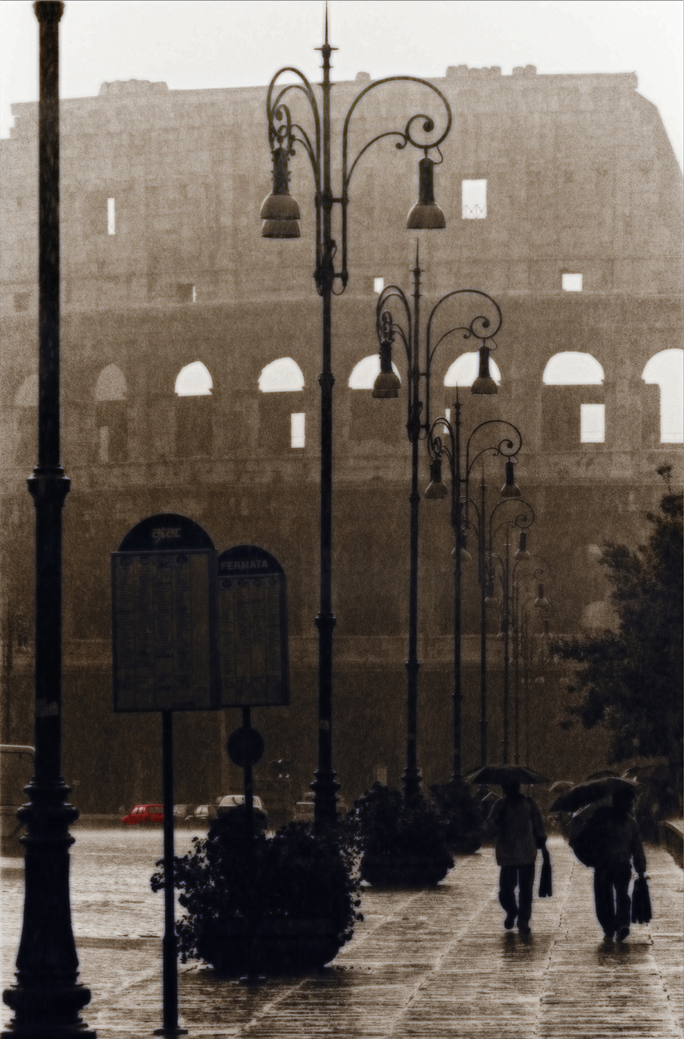 Cyfrowa kopia analogowego zdjęcia powstałego w latach 90 w Rzymie. Odbitka cz-b kolorowana ręcznie. Format do ustalenia.