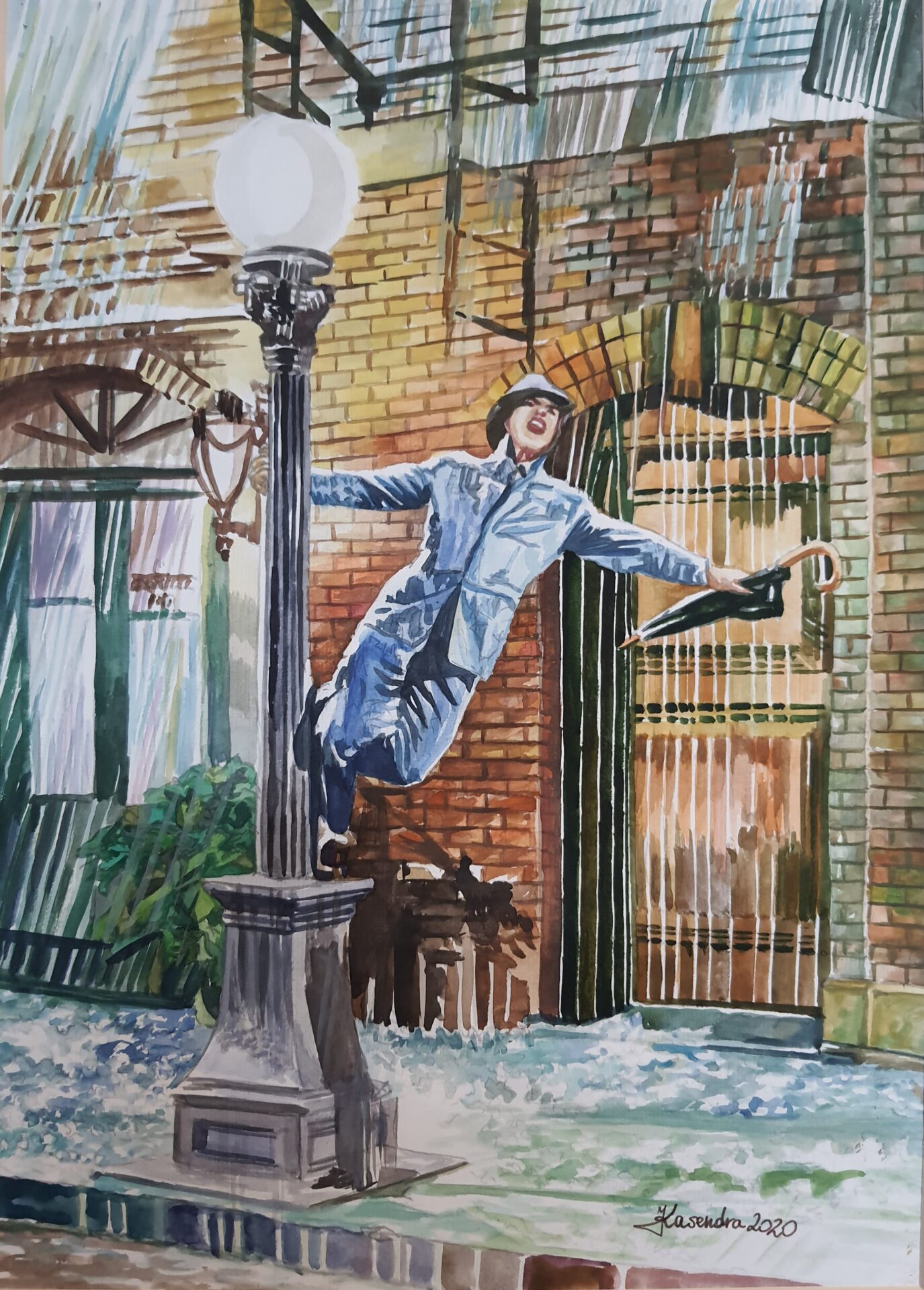 Praca namalowana została profesjonalnymi farbami na bardzo dobrej jakości papierze akwarelowym niemieckiej firmy Aquarell. Akwarela powstała z okazji wystawy tematycznej pt. „Kadr z filmu”. Oprawiona jest w gustowne, eleganckie passe-partout o wymiarach 37 cm na 49 cm i sygnowana z przodu monogramem Jan Kasendra 2020. Obraz może być miłym prezentem dla miłośników filmu, muzyki oraz tak szlachetnej techniki jaką jest niewątpliwie akwarela.