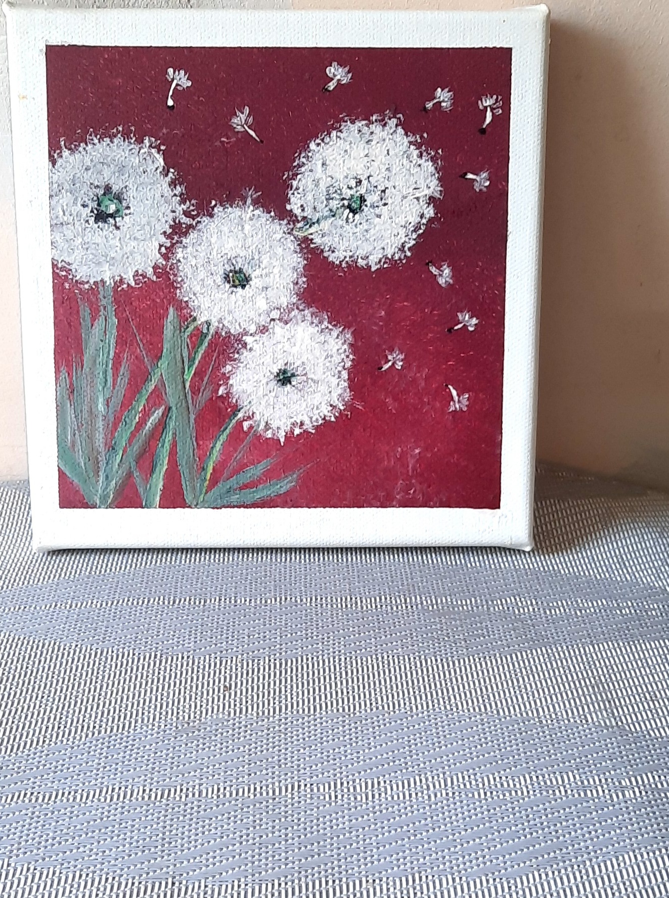 Obraz malowany akrylami, wymiary 15x15cm, boki zamalowane więc nie jest potrzebna ramka. Obraz zabezpieczony werniksem.