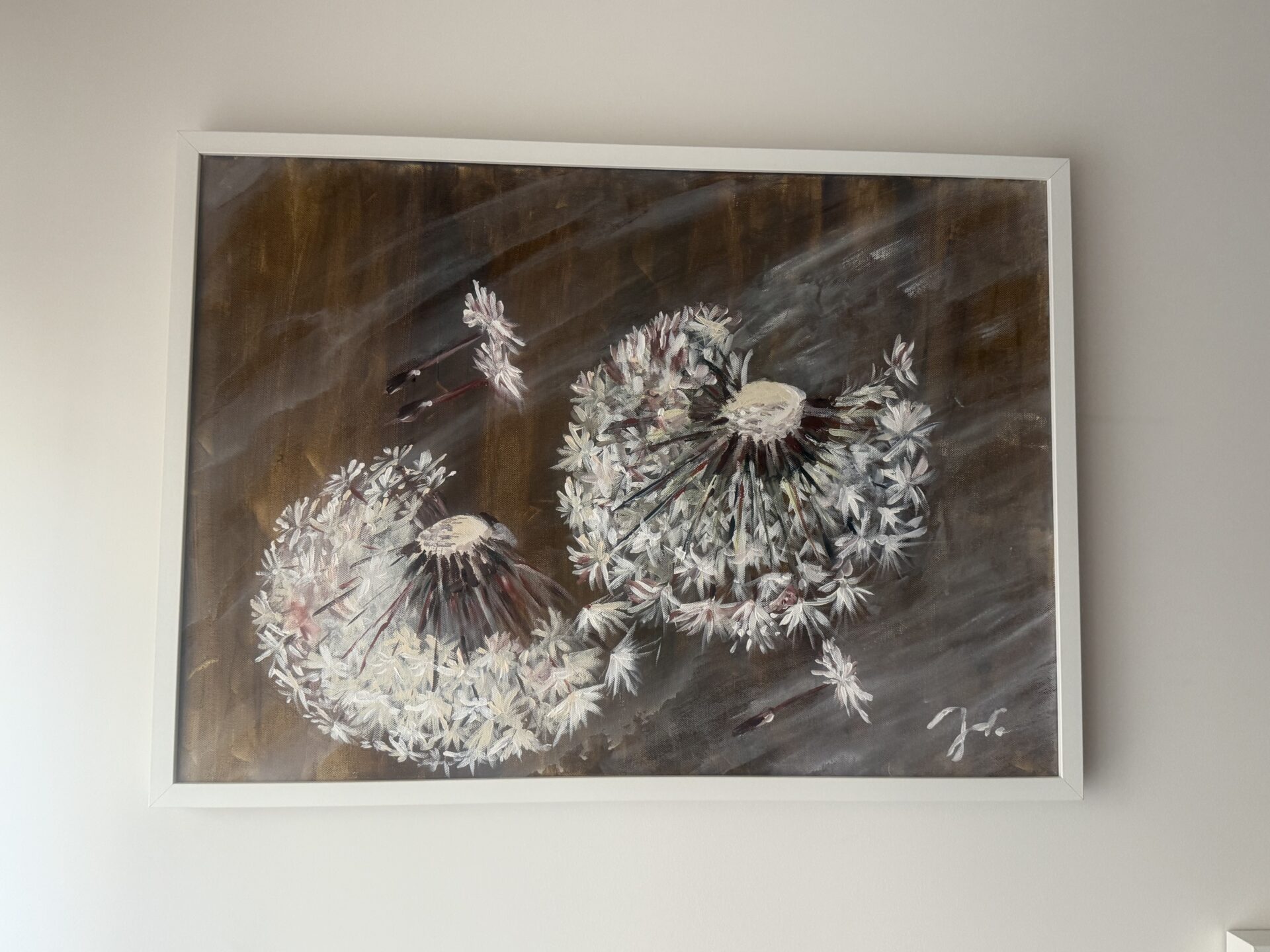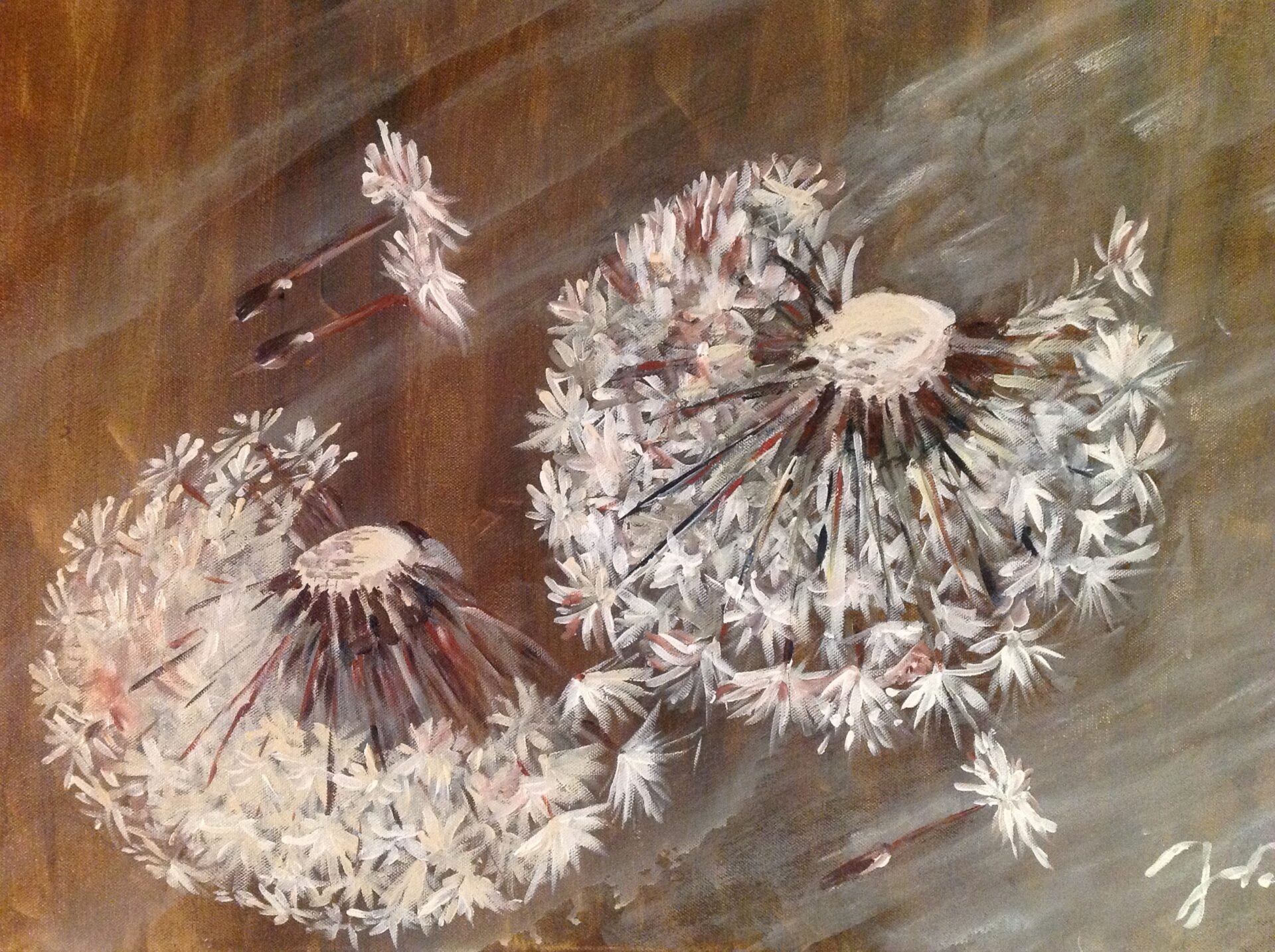 Obraz nacechowany pozytywną aurą, utrzymany w ciepłym brązie . Skłaniający do myśli o przemijaniu i narodzinach na nowo, cyklu jakim poddawane jest w swej naturze życie, nadziei na zmianę. Z drugiej strony obraz pokazuje piękno, którego nie dostrzegamy mimo, ze jest wszechobecne. Mniszek lekarski, który jest tematem obrazu to roślina polna, która leczy, nasyca żółcią nasze trawniki przez wiosnę i lato., to kwiat z którego pletliśmy wianki w dzieciństwie.