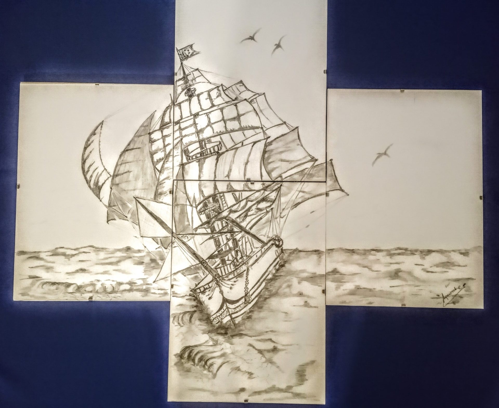 „do brzegu” rysowany ołówkiem składa się z czterech odrębnych rysunków o formacie a 4.