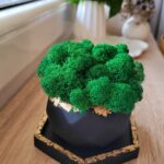 Elegancki zestaw, który doda naturalnego uroku każdemu wnętrzu! Zestaw zawiera oryginalną okrągłą doniczkę z gipsu, wypełnioną intensywnie zielonym mchem chrobotkiem, oraz podstawkę.