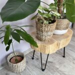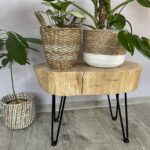 Stolik na 4 metalowych nogach o wysokości 31 cm + drewniany plaster o wysokości 11 cm.