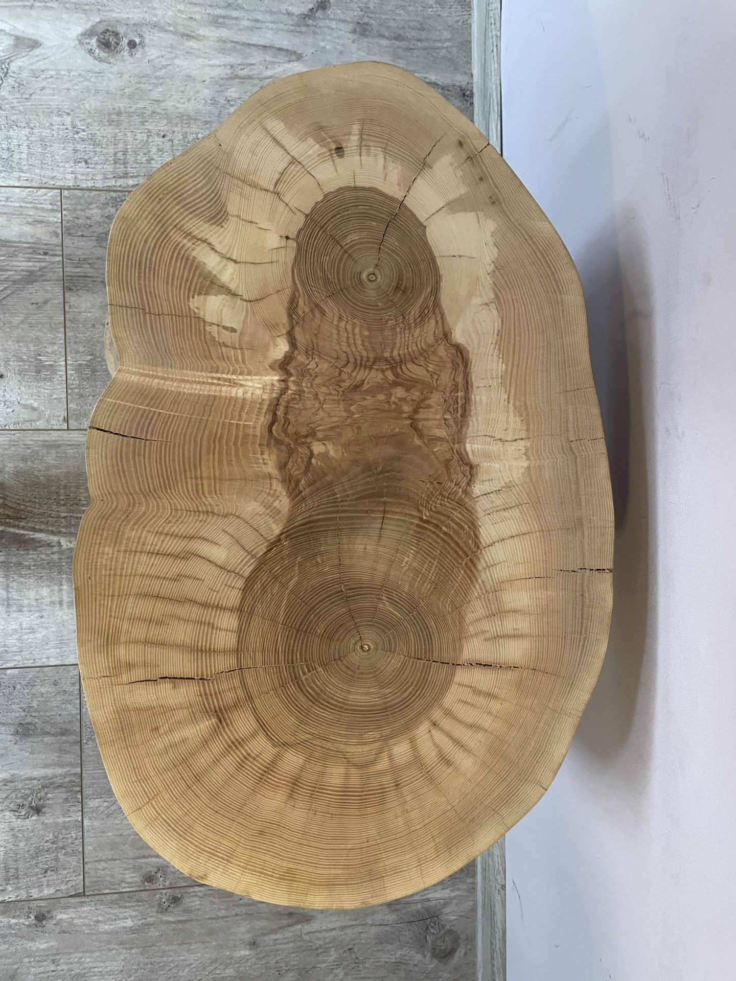 Wysezonowany plaster jesionu. Frezowany dwustronnie frezarką górnowrzecionową, dwustronnie szlifowany i polerowany szlifierką mimośrodową. Polakierowany lakierem ekologicznym.