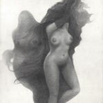 Rysunek został wykonany czarnym ołówkiem na kartonie.