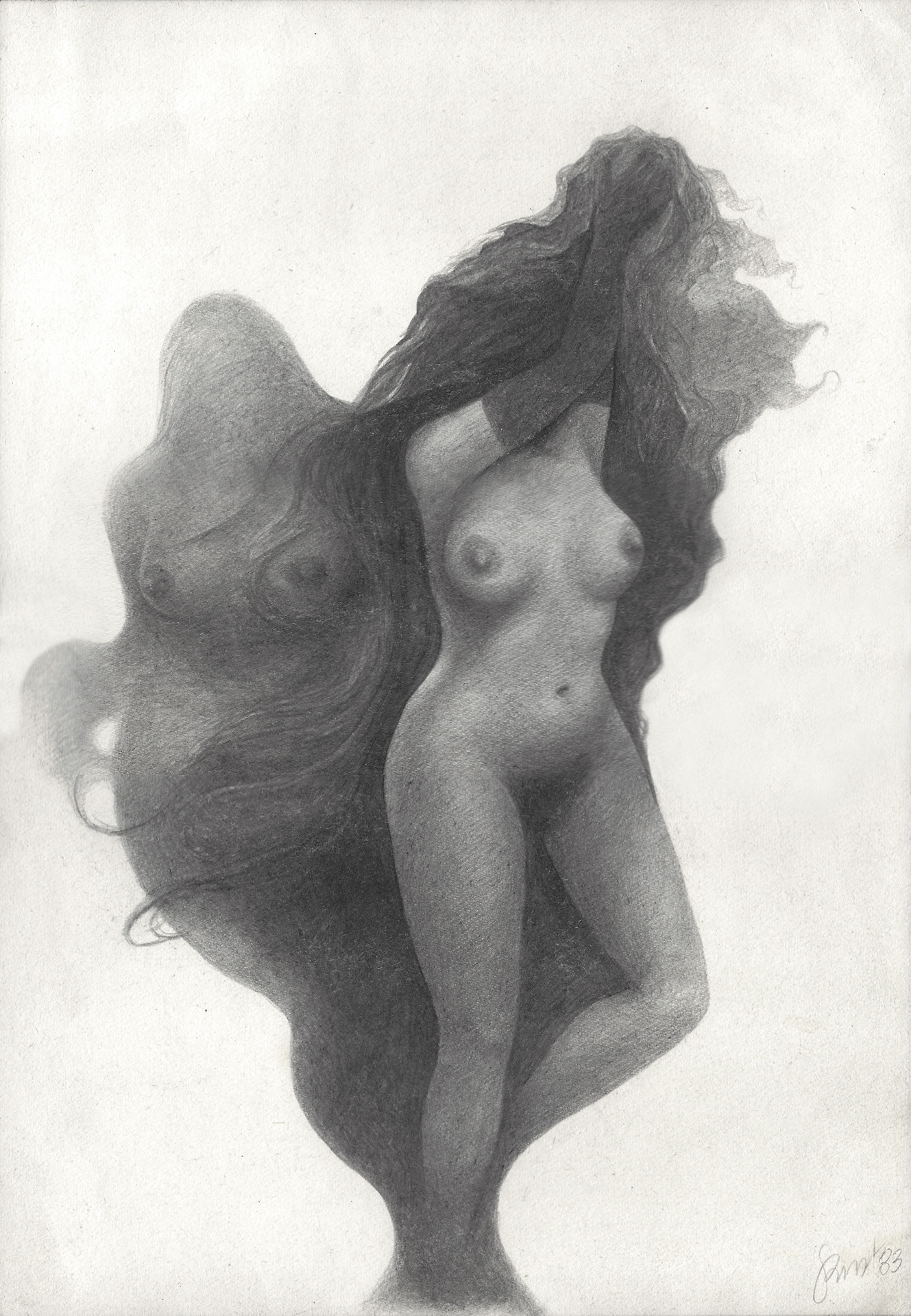 Rysunek został wykonany czarnym ołówkiem na kartonie.
