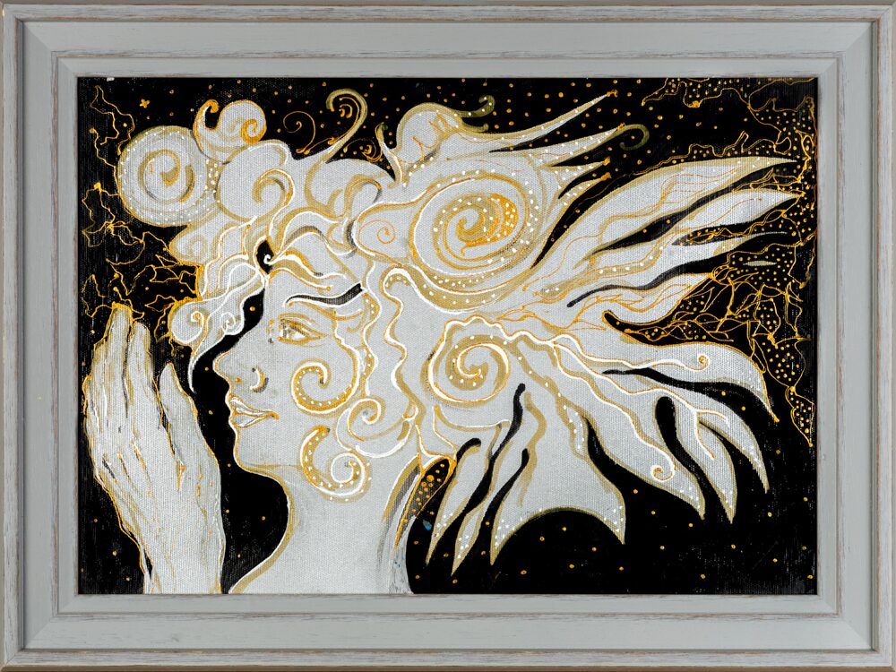 Obraz został wykonany w technice olejnej i akrylowej na desce z przeklejonym płótnem oraz oprawiony w szare, patynowane, drewniane ramy – ogólnej wielkości ok. 40cm x 50cm. Obiekt był utworzony w intencji, jako romantyczny i symboliczny. Ukazuje duszewny* rozwój i aspiracje pokoju, także harmonii i wewnętrznej ciszy.