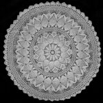 - Ręcznie robiona na szydełku serweta. Praca ma misterny urozmaicony wzór, zawiera elementy dekoracyjne takie jak promienie, wachlarze, ananasy, pęczki czy szachownica. Serweta wykonana jest jasno szarym matowym bawełnianym kordonkiem, prezentuje się bardzo elegancko i efektownie.
