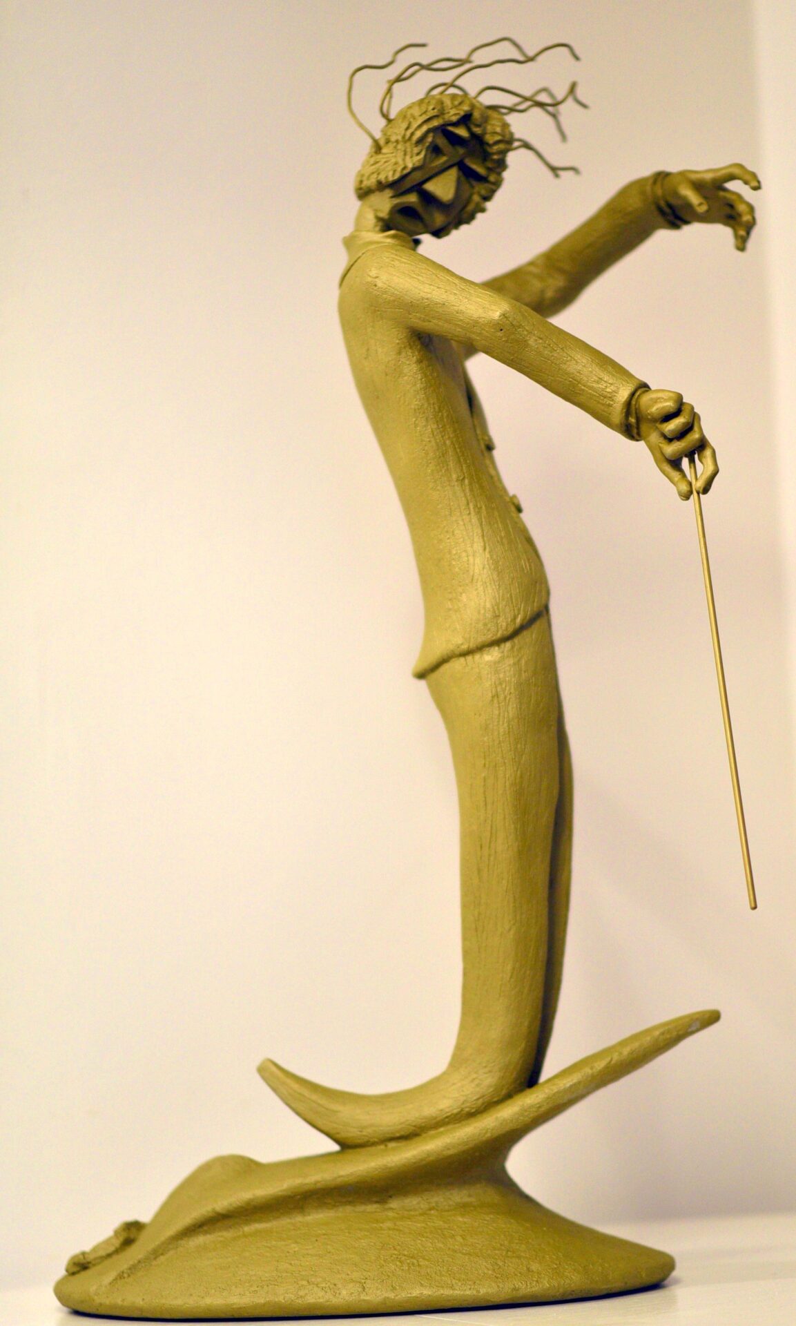 kRYSZTAŁOWE LUSTRO-UNIKAT -OPRAWIONE W MAHONIOWĄ RAMĘ PRZEDSTAWIAJĄCĄ POSTAĆ SYRENY.