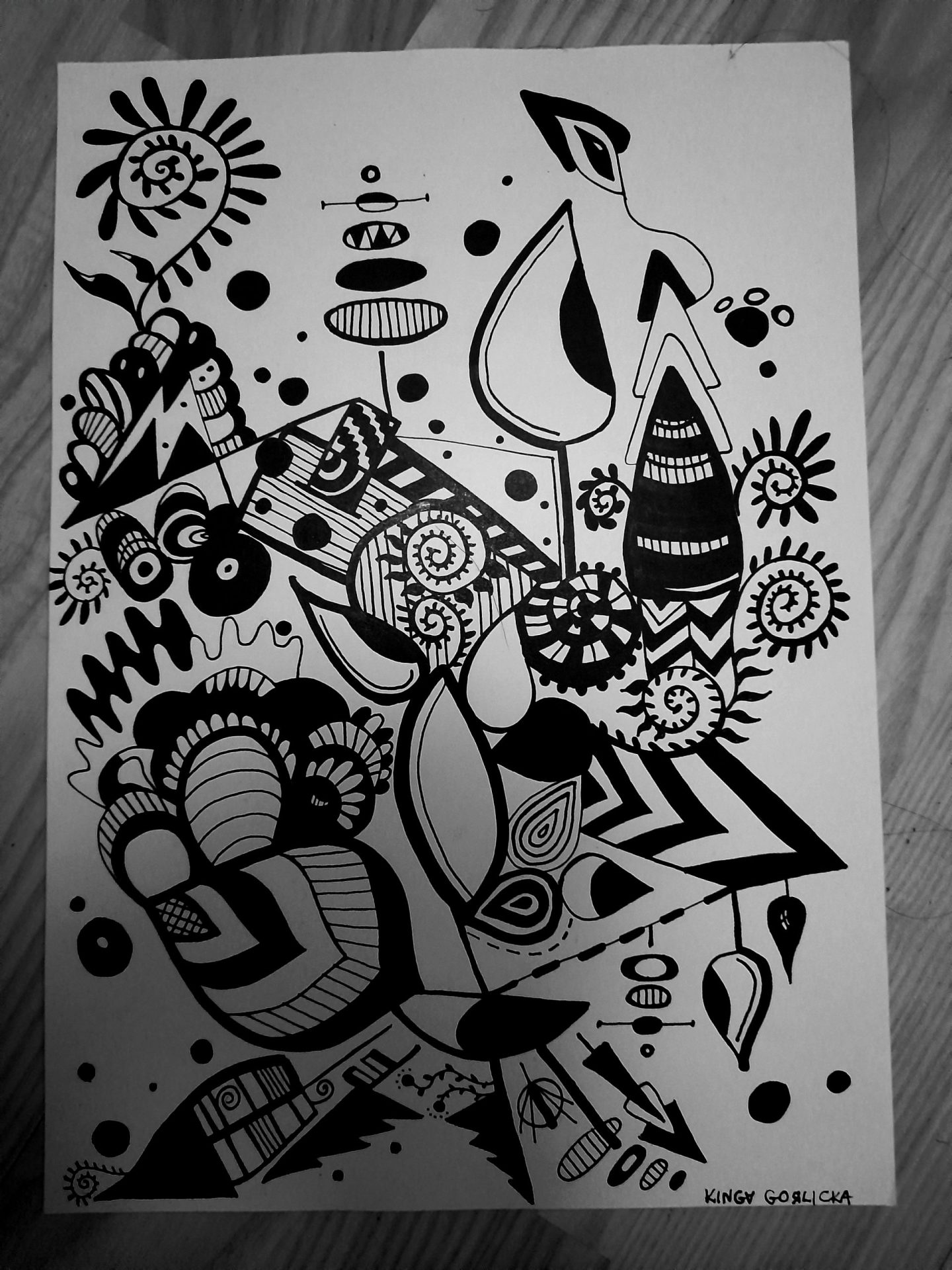 Praca w formacie A4 , czarny tusz.