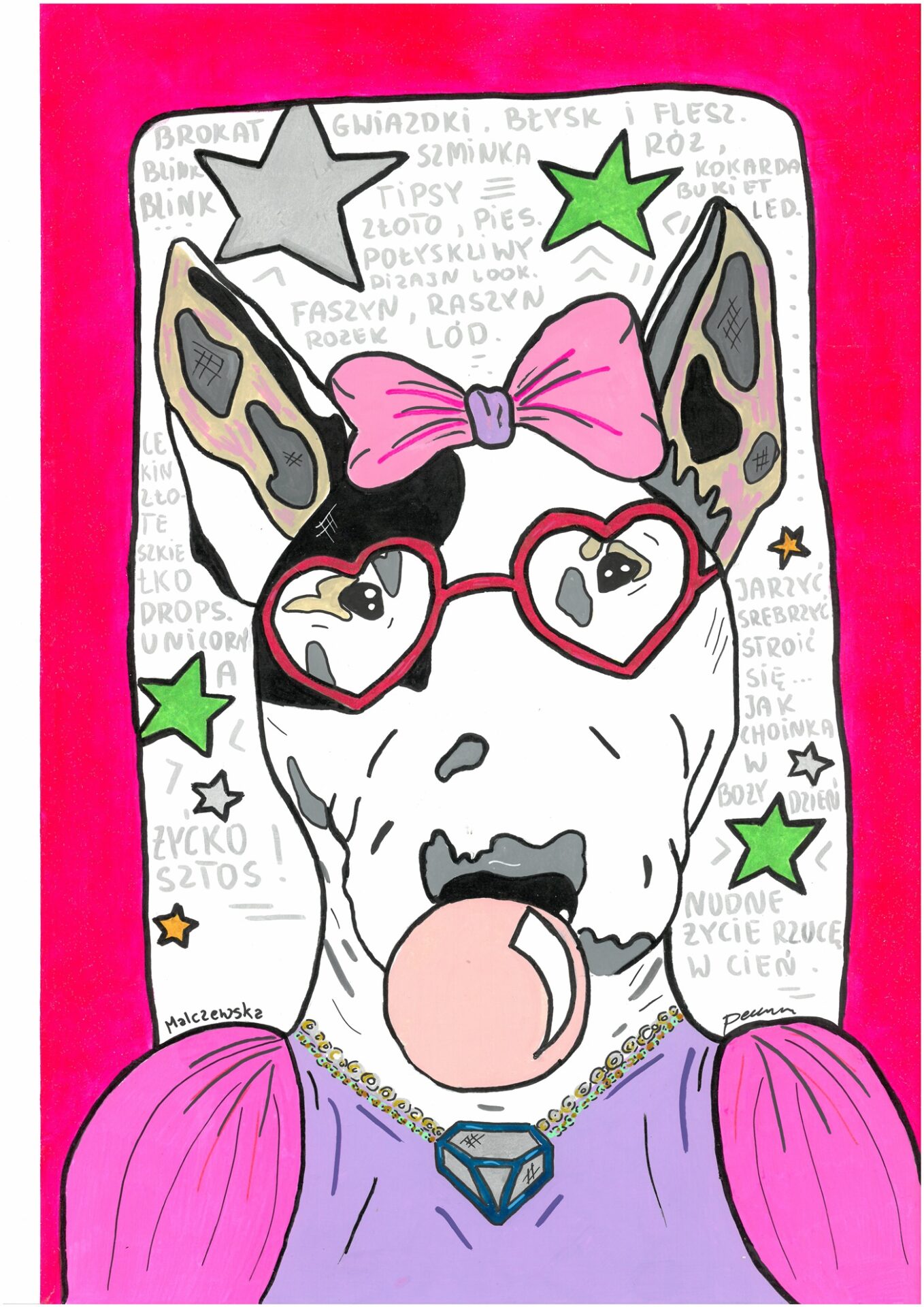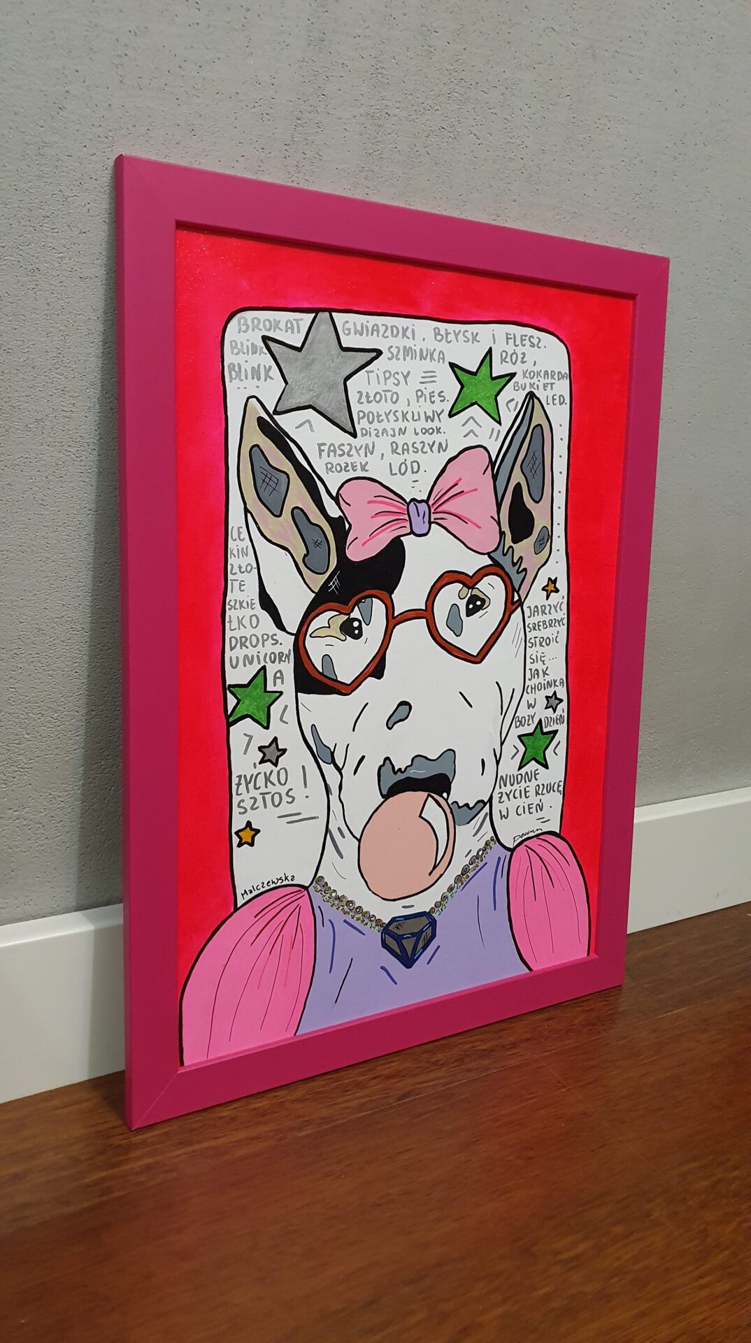 #pitbull #plakat #róż #Dżesika #kicz #brokat