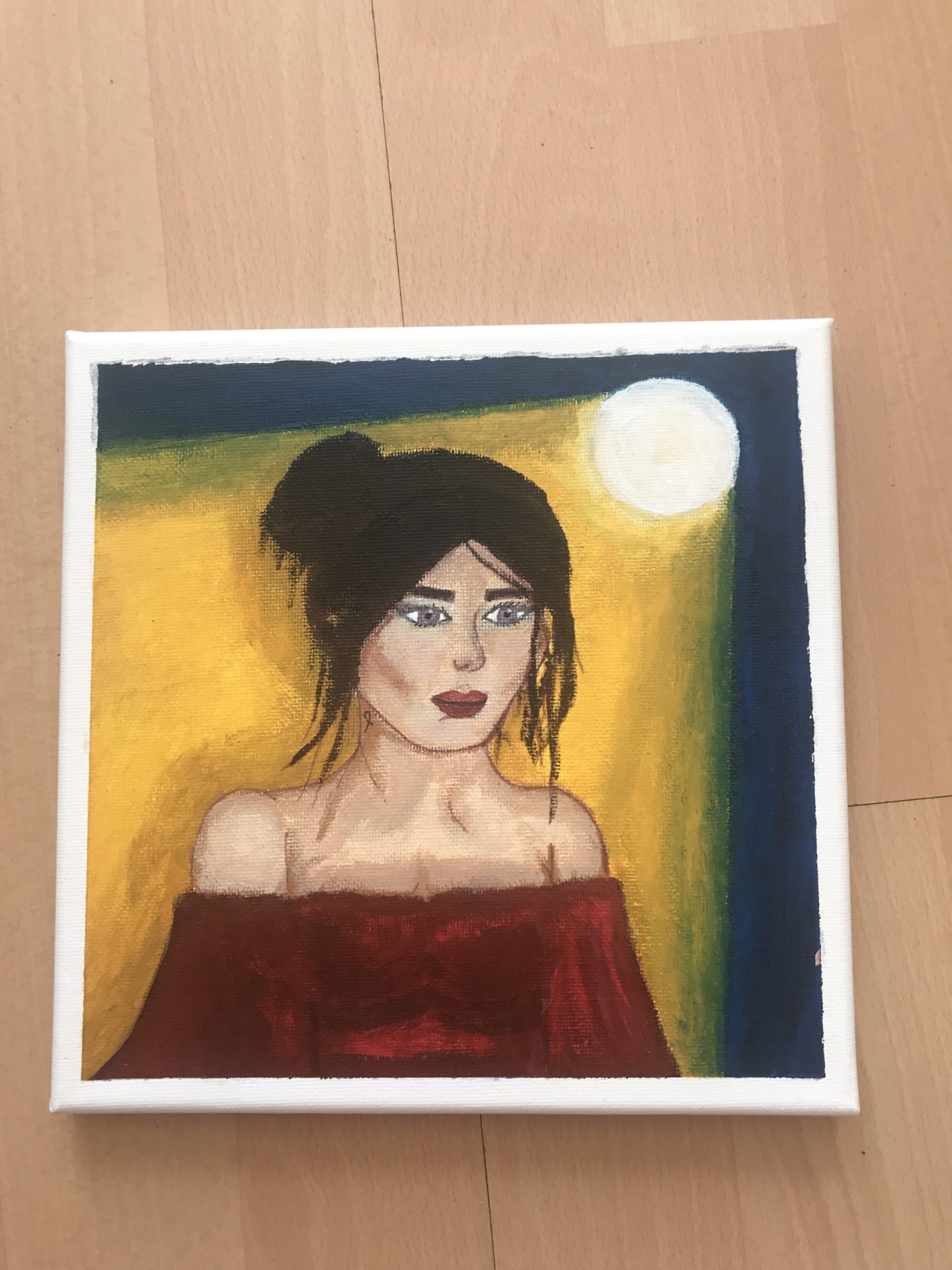 Obraz malowany farbami akrylowymi na płótnie. Obraz jest całkowicie oryginalny, nieinspirowany innymi dziełami. Został namalowany dwa lata temu.