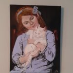 Przedstawia dziewczynkę z ulubionym kotkiem.
