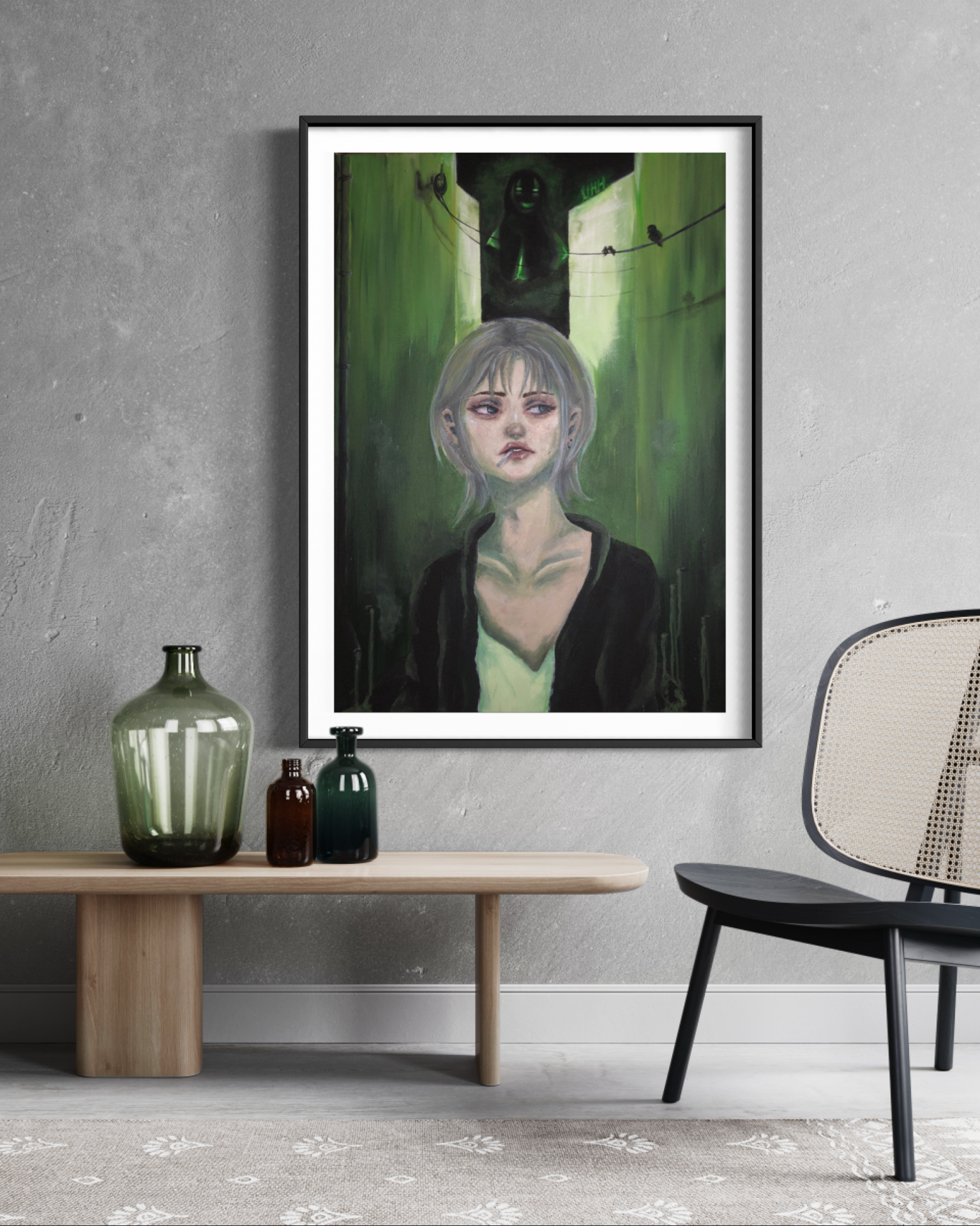Obraz malowany farbami akrylowymi na płótnie . Utrzymany w chłodnych, zielonych tonach. Przedstawia dziewczynę w futurystycznym świecie z zwykłym lizakiem. Obraz dodatkowo zabezpieczony werniksem. W razie pytań zapraszam do kontaktu.